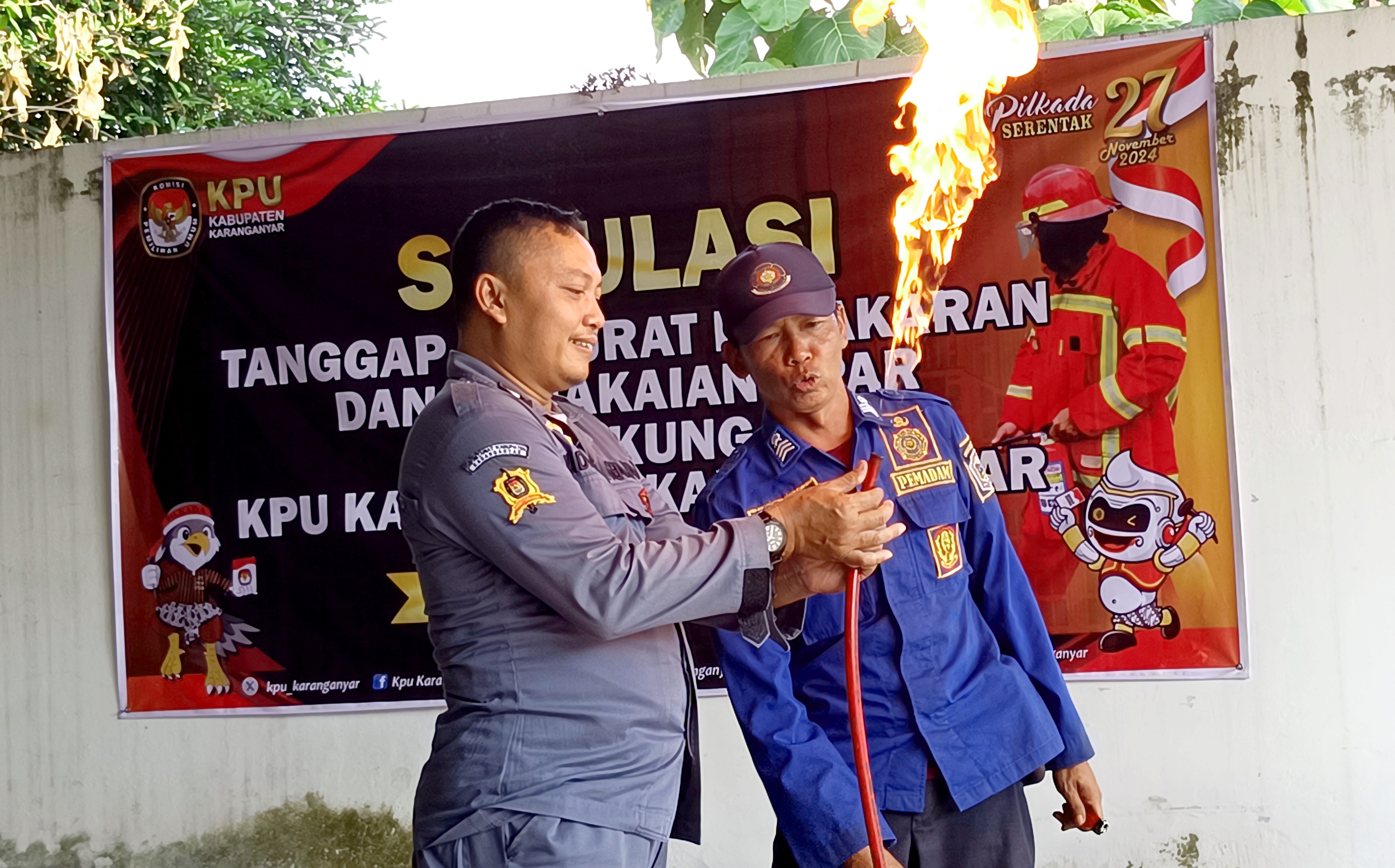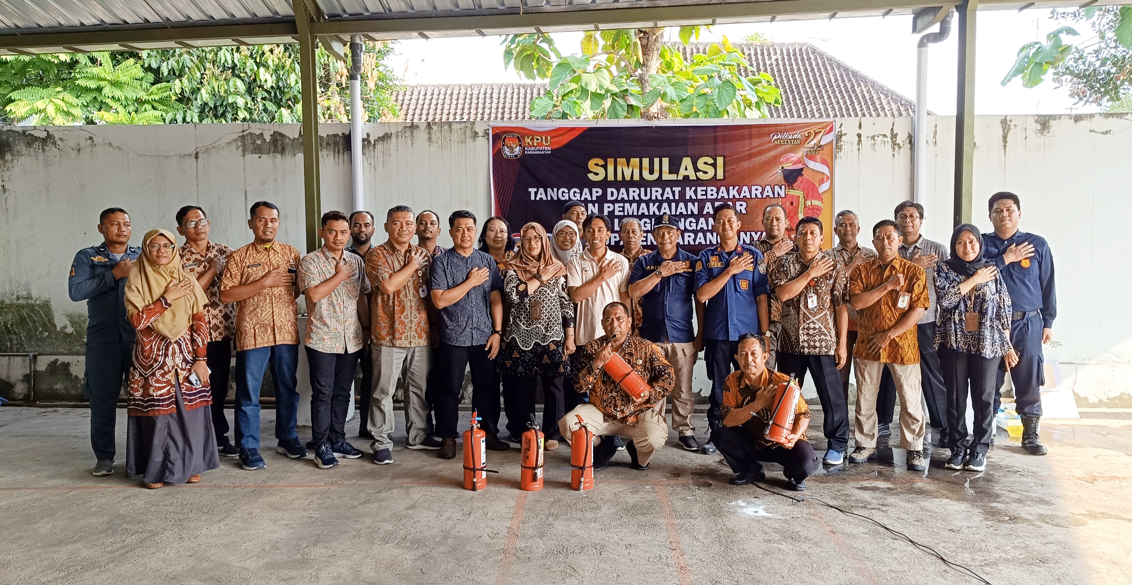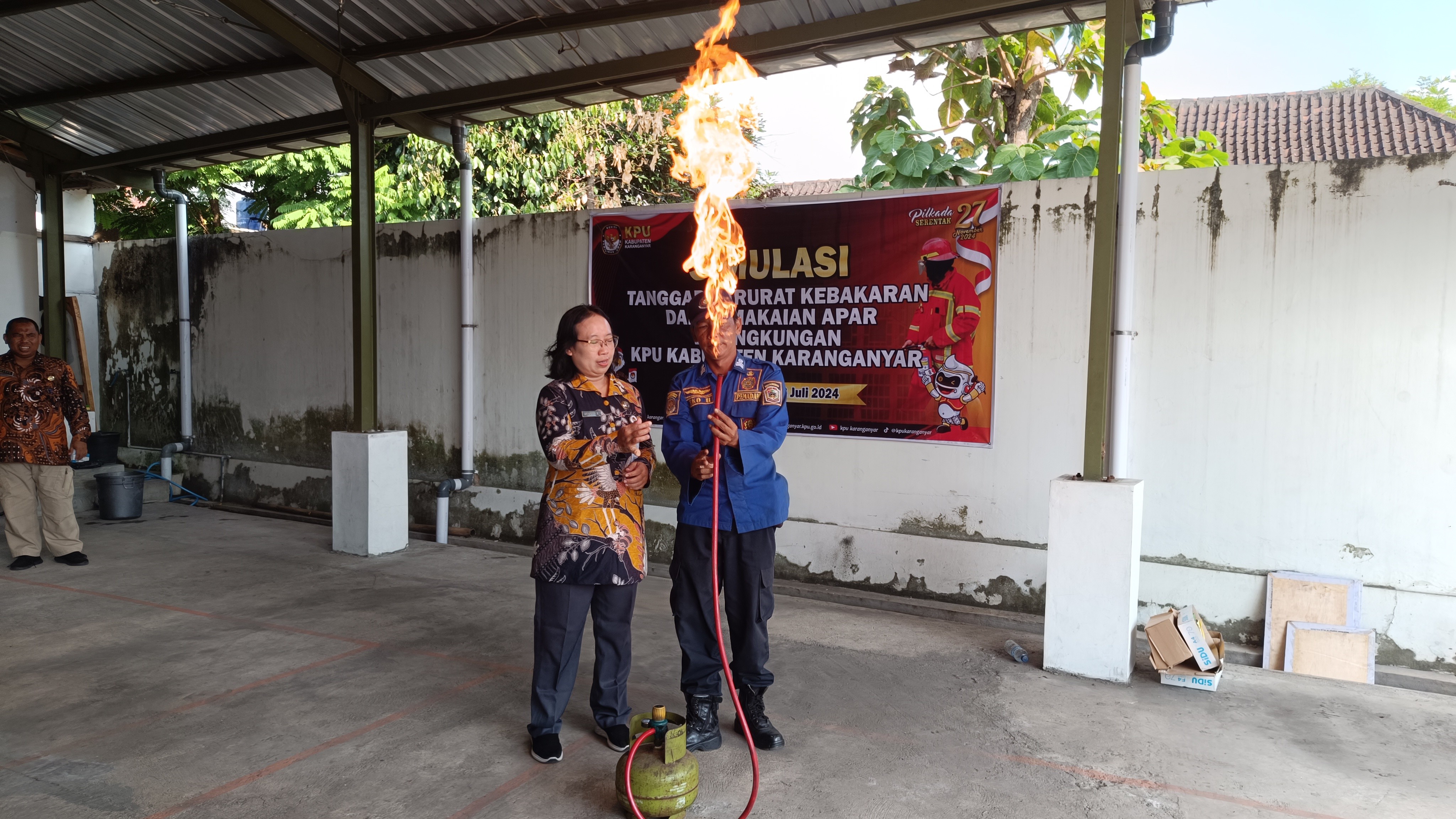 Dalam rangka menjaga keselamatan bahaya kebakaran, Kantor KPU Kab. Karanganyar bersama Damkar Kab. Karanganyar melaksanakan kegiatan edukasi dan simulasi tanggap darurat penanggulangan kebakaran serta tatacara yang baik dan benar dalam pemakaian APAR di halaman kantor KPU Karanganyar .