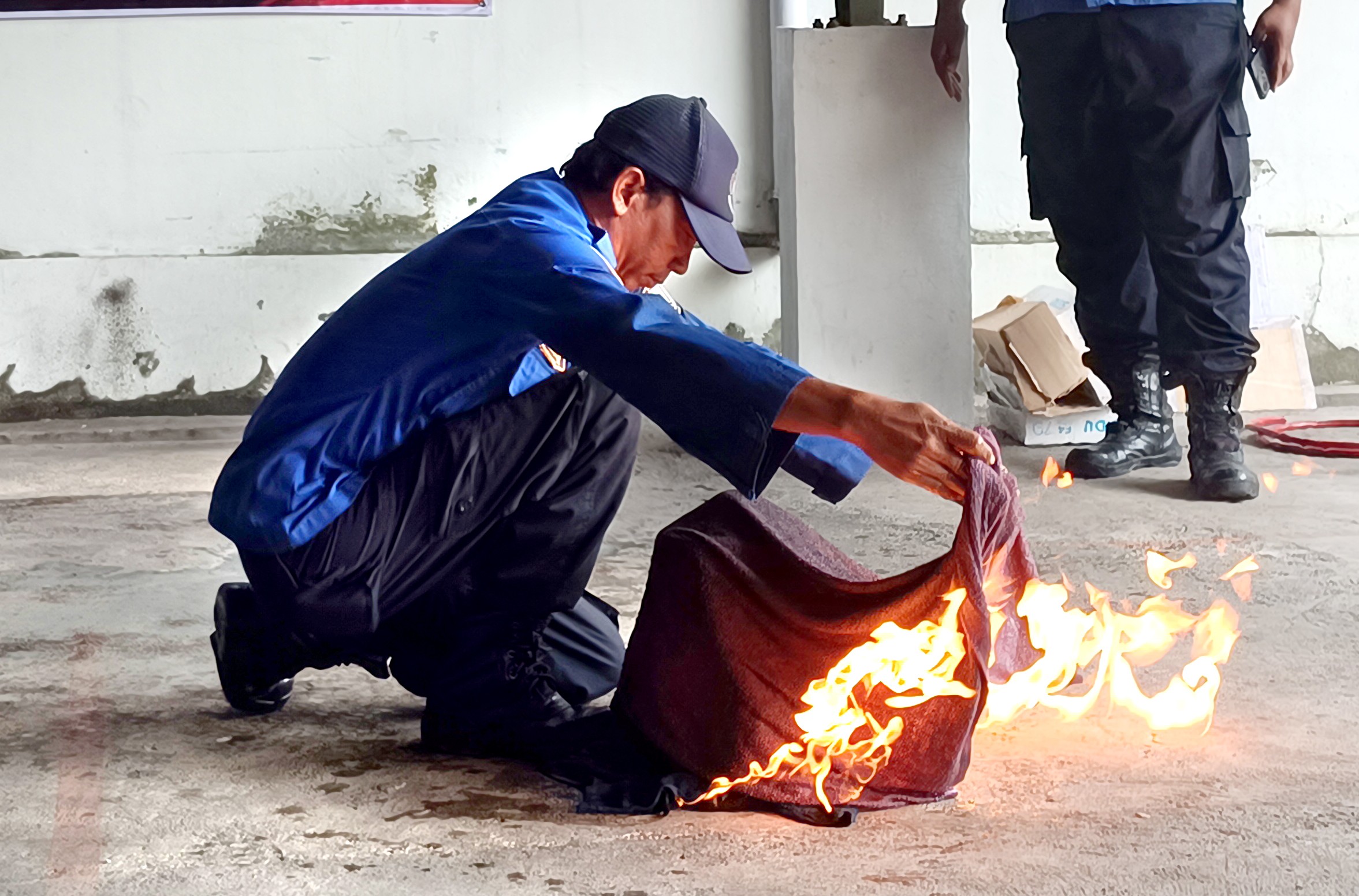Kegiatan tersebut diawali dengan penyampaian materi pencegahan dan pengendalian kebakaran. Dijelaskan juga tata cara pengecekan alat proteksi kebakaran, prosedur dan praktik penggunaan APAR, serta prosedur pemadaman api sederhana dengan teknik penyelimutan (smothering).