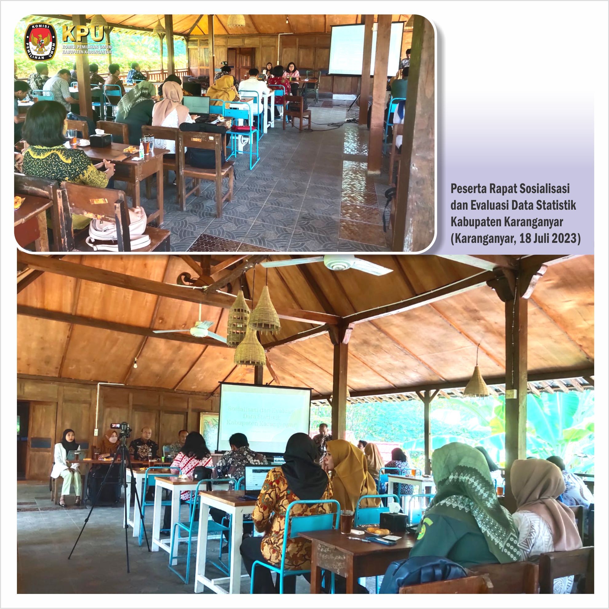 KPU Kabupaten Karanganyar mengikuti Rapat Sosialisasi dan evaluasi Data Statistik Kabupaten Karanganyar di Ndalem Haroem Coffee & Restaurant, Karangpandan, Karanganyar pada Selasa (18/07/2023). Kegiatan rapat ini dalam rangka peningkatan Sumber Daya Manusia (SDM) di bidang data statistik, sektoral di Kabupaten Karanganyar.