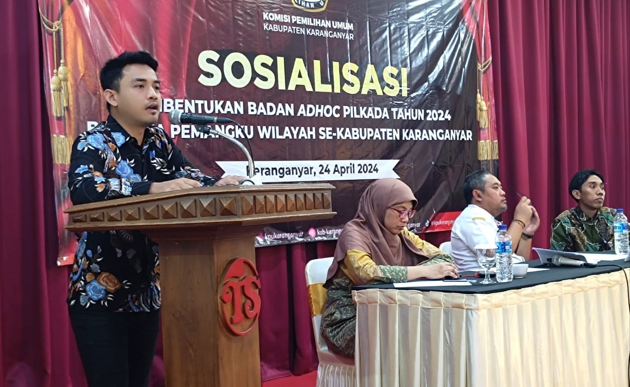 KPU Kabupaten Karanganyar menyelenggarakan Sosialisasi Pembentukan Badan Adhoc Pilkada Tahun 2024 bersama Pemangku Wilayah se-Kabupaten Karanganyar.