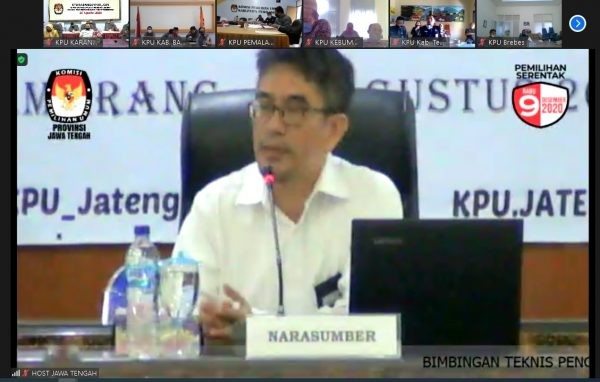 KARANGANYAR – Komisi Pemilihan Umum terus meningkatkan efektifitas dan efisiensi kegiatan dalam penyelenggara Pemilihan Umum (Pemilu) dan kelembagaan yang professional. Demikian dikatakan Ketua KPU Jawa Tengah, Yulianto Sudrajat, dalam acara Bimbingan Teknis (Bimtek) Pengendalian dan Penilaian Resiko dalam Sistem Pengedalian Intern Pemerintah (SPIP) yang diselenggarakan oleh KPU Provinsi Jawa Tengah, Selasa (25/08/2020).