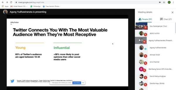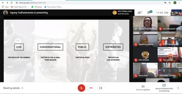 Hal ini disampaikan oleh Agung Yudha, Chief Representative of Twitter APAC in Jakarta and Head of Public for Indonesia, Malaysia and The Philippines dalam webinar bertema “Optimalisasi Media Sosial dalam Pilkada Dimasa Pandemi Covid-19”, yang diselenggarakan oleh KPU Provinsi Jawa Tengah, Kamis (9/07/2020).