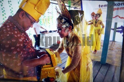 Medan, kpu.go.Id – Tari persembahan Tepa Sirih pada kegiatan temu komunitas peduli pemilu di danau sihomba, kecamatan medan marelan, kota medan, Provinsi Sumatera utara, Sabtu (14/11). Tarian tersebut biasa dilakukan untuk menyambut tamu kehormatan yang datang ke Kota Medan dengan memberikan Sirih kepada tamu tersebut.