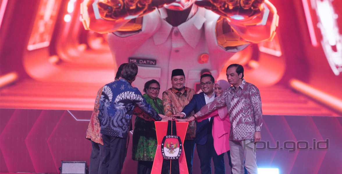 Hadir pada peluncuran ini Ketua KPU Mochammad Afifuddin, Anggota KPU Betty Epsilon Idroos, August Mellaz, Yulianto Sudrajat.