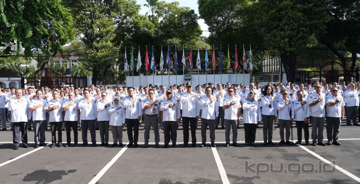 Hadir mengikuti apel, Pejabat Eselon I, II, III, IV, Pejabat Fungsional, Tenaga Ahli serta Staf di Lingkungan Sekretariat Jenderal KPU. (humas kpu dianR/foto: dianR-idan-hilvan/ed diR)