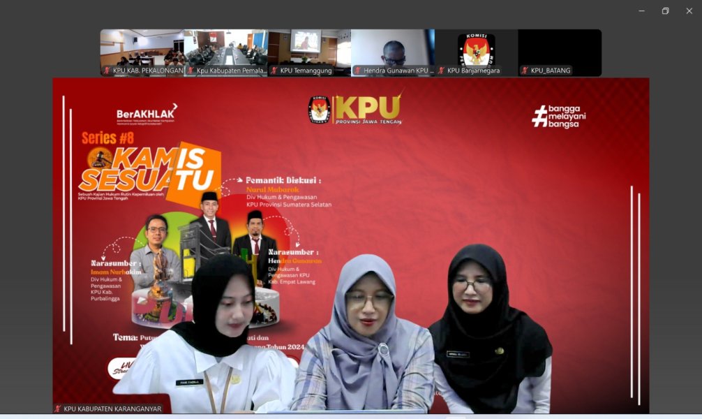 KARANGANYAR – Komisi Pemilihan Umum (KPU) Kabupaten Karanganyar mengikuti kegiatan diskusi bertajuk NGOPI ASLI (Ngobrol Pinter Arsip dan Logistik) yang diselenggarakan KPU Provinsi Jawa Tengah, Rabu (09/07/2025). NGOPI ASLI kali ini mengangkat tema "Menata Langkah, Mengukir Strategi: Mewujudkan KPU yang Adaptif dan Berintegritas" sebagai bagian dari upaya penyusunan Rencana Strategis (Renstra) kelembagaan ke depan. Kegiatan dibuka langsung oleh Handi Tri Ujiono, Ketua KPU Provinsi Jawa Tengah. Dalam sambutannya, Handi mengatakan tema NGOPI ASLI kali ini sangat relevan dengan tantangan yang dihadapi hari ini dan ke depan. "KPU dituntut untuk tidak hanya profesional, tetapi juga adaptif terhadap perubahan, serta menjaga integritas sebagai nilai utama dalam menjalankan tugas dan kewenangannya. Melalui kegiatan ini, saya berharap akan lahir berbagai gagasan strategis dalam penyusunan rencana strategis (renstra) KPU Provinsi Jawa Tengah, yang dapat menjadi peta jalan kelembagaan kita ke depan, lebih terstruktur, responsif, dan tetap teguh pada prinsip demokrasi," ujarnya. Lebih lanjut, Handi memberikan apresiasi kepada Divisi Perencanaan dan Logistik, serta seluruh tim penyelenggara yang telah menginisiasi ruang diskusi lewat NGOPI ASLI. Harapannya, hal itu dapat menjadi langkah konkret dalam memperkuat peran KPU sebagai pelayan demokrasi. Dalam forum yang diikuti secara daring oleh ketua beserta anggota KPU kabupaten/kota dan sekretaris beserta jajaran sekretariat KPU kabupaten/kota di 35 Kabupaten/Kota se Jawa Tengah, hadir sebagai narasumber utama Basmar Perianto Amron, Ketua Divisi Perencanaan & Logistik KPU Provinsi Jawa Tengah. Basmar memberikan paparan mendalam mengenai pentingnya perencanaan strategis yang dinamis dan berbasis data dalam mendukung fungsi kelembagaan KPU di era transformasi digital dan dinamika politik yang terus berkembang. Dalam penyampaiannya, Basmar menekankan bahwa penyusunan Renstra tidak bisa lagi dilakukan dengan pendekatan statis. "KPU harus mampu membaca arah perubahan, baik dari sisi regulasi, teknologi informasi, hingga tuntutan publik terhadap transparansi dan akuntabilitas. Oleh karena itu, strategi perencanaan kita harus adaptif, berbasis data, dan tentu saja tetap menjunjung tinggi nilai-nilai integritas," ujarnya. Lebih lanjut, ia juga menyoroti pentingnya kolaborasi lintas divisi serta penguatan peran perencana di daerah dalam mendukung eksekusi program-program strategis. “Renstra bukan hanya milik pusat atau provinsi, tetapi harus menjadi panduan kerja bersama di semua level kelembagaan. Setiap satuan kerja di kabupaten/kota harus merasa memiliki dan memahami arah kebijakan yang disusun,” tambah Basmar. Moderator dalam kegiatan ini, Sabbikisma Setia N, yang menjabat sebagai Kepala Bagian Perencanaan, Data dan Informasi KPU Provinsi Jawa Tengah, memandu diskusi secara interaktif. Ia membuka sesi tanya jawab yang diikuti antusias oleh para peserta dari berbagai KPU kabupaten/kota yang ingin mengetahui lebih jauh tentang langkah konkret implementasi strategi perencanaan. Kegiatan NGOPI ASLI ini menjadi wadah strategis bagi para pengelola perencanaan untuk menyelaraskan pemahaman, memperbarui pendekatan, serta memastikan bahwa visi KPU sebagai lembaga penyelenggara pemilu yang profesional dan terpercaya dapat terwujud melalui rencana yang terstruktur dan terukur. Dengan semangat transformasi dan peningkatan kapasitas internal, KPU Jawa Tengah terus membuktikan keseriusannya dalam membangun kelembagaan yang siap menjawab tantangan zaman. (TRY).