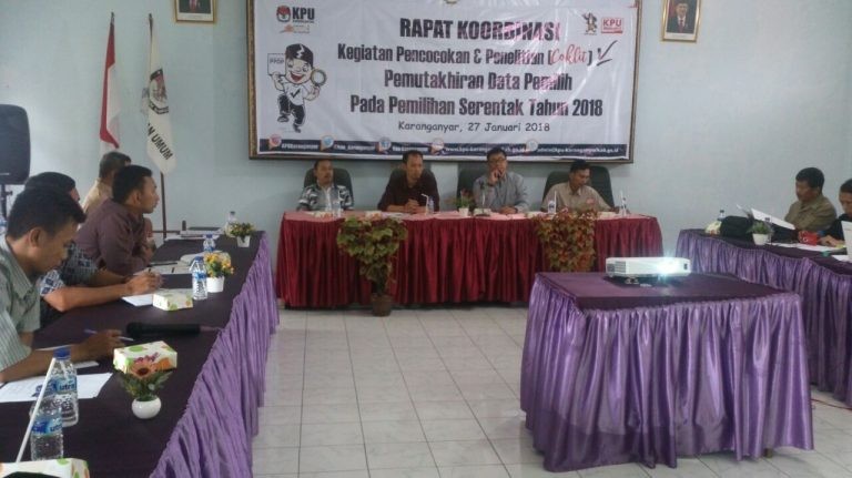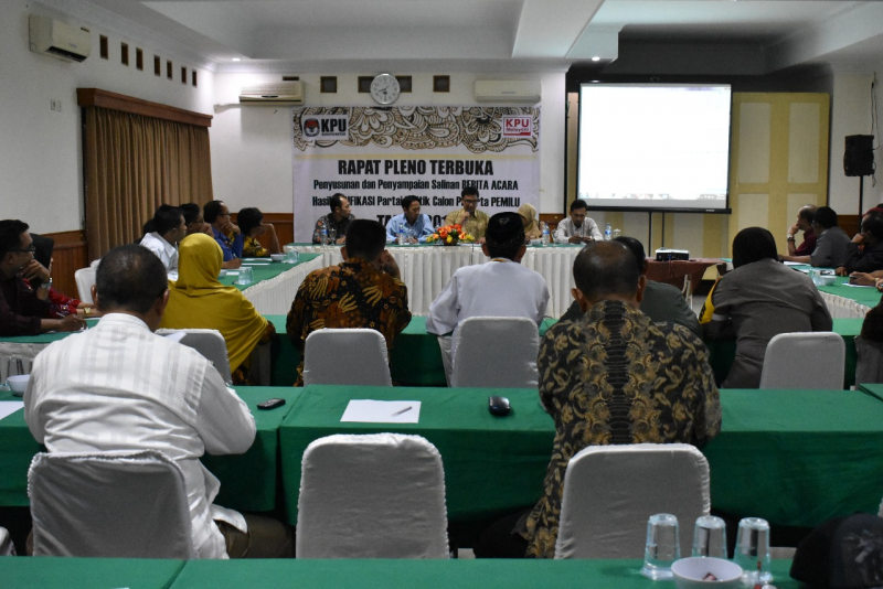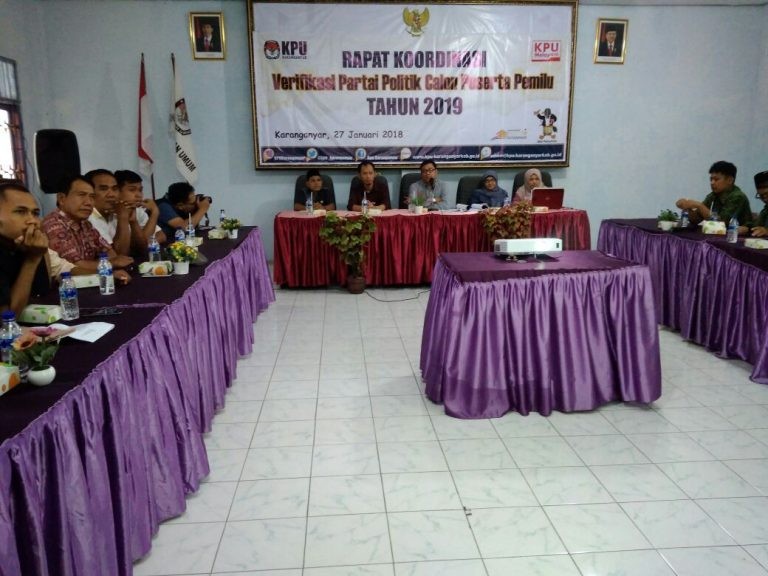 KARANGANYAR, kpu-karanganyarkab.go.id – KPU Kabupaten Karanganyar menggelar Rapat Pleno Terbuka Penyusunan dan Penyampaian Salinan Berita Acara Hasil Verifikasi Partai Politik Calon Peserta Pemilu Tahun 2019, Selasa (7/02/2018). Rapat Pleno dihadiri oleh Parpol tingkat Kabupaten Karanganyar, Panwaskab, dan beberapa lembaga terkait, seperti Polres Karanganyar, Kominfo, Dandim 0727 Karanganyar, dan Kesbangpol. Rapat Pleno dipimpin langsung oleh Ketua KPU Kabupaten Karanganyar, Sri Handoko Budi Nugroho. Dalam Rapat Pleno tersebut, sebanyak 12 Parpol lama dan 3 Parpol baru tingkat Kabupaten Karanganyar telah selesai diverifikasi oleh KPU. Ada 4 (empat) hal yang diverifikasi oleh KPU sebagai syarat menjadi calon peserta pemilu 2019, yakni kehadiran pengurus inti meliputi Ketua, Sekretaris, dan Bendahara, keterwakilan perempuan sebanyak 30%, status domisili kantor sekretariat Parpol, dan verifikasi keanggotaan Parpol. Hasil verifikasi Parpol disampaikan oleh Komisioner KPU Karanganyar secara bergantian dan dibacakan secara rinci hasil dari masing-masing poin yang diverifikasi. Dari 15 keseluruhan Parpol tingkat Kabupaten Karanganyar, 14 Parpol dinyatakan memenuhi syarat yang terdiri dari 11 Parpol lama, yaitu Golkar, PDI-P, PKS, PKB, PPP, Nasdem, Demokrat, Gerindra, Hanura, PBB, dan PAN serta 3 Parpol baru, yaitu Perindo, PSI, dan Garuda. Tersisa 1 Parpol yang dinyatakan tidak memenuhi syarat tingkat Kabupaten Karanganyar, yaitu PKPI. (Tfc)