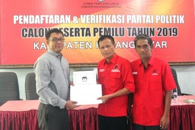 KARANGANYAR, kpu-karanganyarkab.go.id – “Mari kita mulai pagi ini dengan semangat prima, KPU harus maksimal dalam melayani parpol yang melakukan penyerahan dokumen hingga pukul 24.00 nanti” ujar Maksum, anggota KPU Karanganyar divisi Teknis dalam amanatnya pada apel pagi di halaman Kantor KPU Karanganyar, senin (16/10). Tanggal 16 Oktober 2017 adalah hari terakhir pendaftaran parpol calon peserta pemilu 2019. Mengacu pada pasal 14 PKPU nomor 11 tahun 2017, KPU akan membuka layanan penerimaan pendafataran parpol hingga pukul 24.00. Pukul 08.30 WIB, Partai Garuda menjadi partai pertama yang tiba di Kantor KPU Karanganyar untuk menyerahkan dokumen pendaftaran. Ketua KPU Karanganyar, Sri Handoko Budi Nugroho, menyambut rombongan Partai Garuda di Aula Kantor KPU Karanganyar. Setelah dilakukan pengecekan terhadap dokumen pendaftaran yang berjumlah 961 keanggotaan, Partai Garuda dinyatakan telah memenuhi kesesuaian data dan diberi TandaTerima oleh KPU Karanganyar. Menyusul tidak lama setelah Partai Garuda, datang Partai Golkar pukul 10.10 dan PDI Perjuangan pukul 10.15 ke Kantor KPU Karanganyar. Masing-masing dari partai politik tersebut membawa dokumen berjumlah 2.068 keanggotaan (Partai Golkar) dan1.008 keanggotaan (PDI Perjuangan). Daftar jumlah keanggotaan ini sudah jauh di atas batas minimal keanggotaan di Kabupaten Karanganyar, yaitu 896 keanggotaan, dan tugas KPU Karanganyar adalah memastikan bahwa dokumen yang dibawa parpol telah lengkap dan sesuai dengan SIPOL. Partai Golkar dan PDI Perjuangan telah memenuhi syarat kesesuaian dokumen dan mendapatkan Surat Tanda Terima dari KPU Karanganyar yang diserahkan oleh Ketua KPU Karanganyar. Siang hari, tiba rombungan Partai PPP pukul 13.55 disusul rombongan Partai Nasdem pukul 14.46. Kedua partai ini pun, Partai PPP dan Partai Nasdem, dinyatakan oleh KPU Karanganyar bahwa dokumen pendaftarannya telah lengkap, yaitu 1.071 keanggotaan dokumen PPP dan 1.191 keanggotaan dokumen Partai Nasdem. Partai Demokrat juga melakukan penyerahan dokumen pendaftaran ke Kantor KPU Karanganyar di hari akhir pendaftaran pada pukul 16.01. Dokumen Partai Demokrat berjumlah 1.322 keanggotaan. Jumlah ini telah sesuai dengan data di SIPOL dan secara administrasi lengkap setelah dilakukan pengecekan oleh petugas KPU Karanganyar. Partai Demokrat mendapatkan Tanda Terima dari KPU Karanganyar. Pukul 22.13, di tengah cuaca malam yang hujan rintik-rintik, PBB datang ke Kantor KPU Karanganyar guna melakukan pendaftaran. Kedatangan PBB ini disusul oleh Partai Hanura pada pukul 22.23 dan PKB pada pukul 22.52. Ketiga partai dilayani secara bersamaan di tempat yang berbeda oleh KPU Karanganyar, yaitu 2 partai di Aula Kantor KPU Karanganyar yang sudah di setting untuk penerimaan dua partai, dan satu partai terakhir di RuangRapat KPU Karanganyar. Petugas KPU pun melakukan pengecekan dokumen secara maskimal. Pertama, Partai Hanura dinyatakan dokumen lengkap berjumlah 1.187. Kedua, PKB menyusul mendapatkan surat Tanda Terima dengan jumlah dokumen 1.156 keanggotaan. Terakhir, pukul 00.49, selasa (17/10), PBB dengan jumlah dokumen 1.400 keanggotaan menerima penyerahan surat Tanda Terima dari KPU Karanganyar. Dengan demikian, secara akumulatif, ada 14 parpol di tingkat Kabupaten Karanganyar yang telah diterima dokumennya oleh KPU Karanganyar. (Tfc)