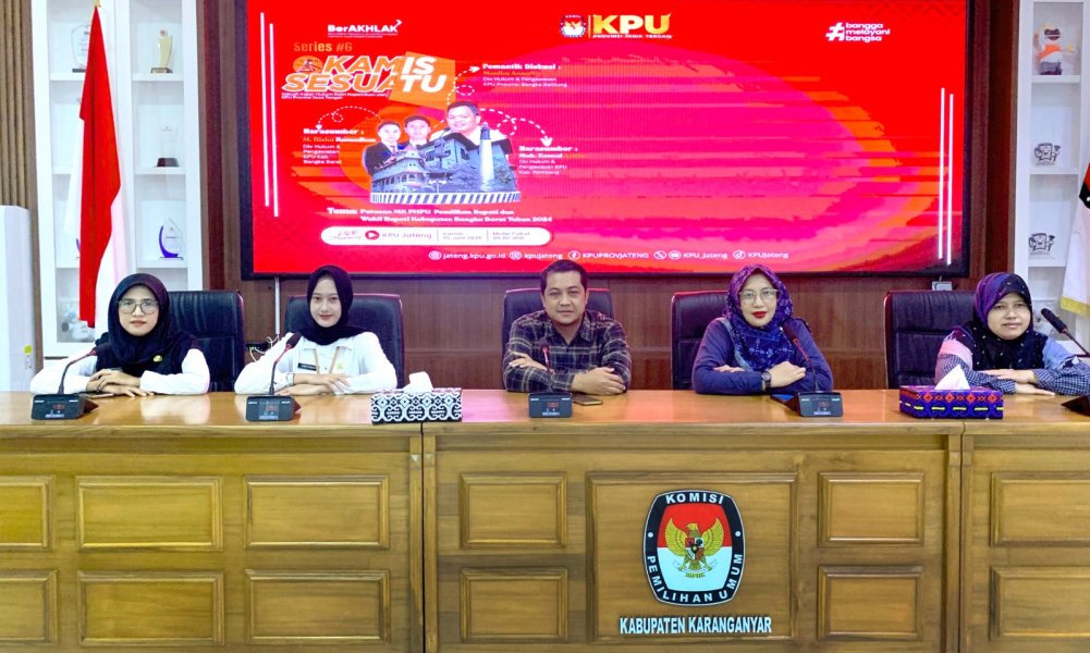 KARANGANYAR - Komisi Pemilihan Umum (KPU) Kabupaten Karanganyar hadir dalam kegiatan peluncuran Zona Informasi Terintegrasi (ZIT) yang diselenggarakan oleh KPU Provinsi Jawa Tengah, pada Senin (1/7/2025). Kegiatan berlangsung secara hybrid bertempat di Kantor KPU Provinsi Jawa Tengah dan daring melalui Zoom meeting serta Live Youtube. Acara ini merupakan bentuk inovasi KPU Provinsi Jawa Tengah dalam memperkuat pelayanan informasi publik yang lebih terbuka, mudah diakses, dan berbasis teknologi digital. ZIT hadir sebagai sistem yang menggabungkan berbagai kanal informasi KPU, mulai dari Jaringan Dokumentasi dan Informasi Hukum (JDIH), media sosial, hingga layanan PPID agar lebih terpadu dan efisien. Ketua KPU Provinsi Jawa Tengah, Handi Tri Ujiono, menyampaikan bahwa ZIT adalah wujud konkret dari semangat keterbukaan informasi publik di lingkungan KPU. Handi menegaskan pentingnya ZIT sebagai sarana memperkuat akuntabilitas lembaga dan kepercayaan publik. "Melalui Zona Informasi Terintegrasi, masyarakat dapat memperoleh informasi kepemiluan secara cepat, tepat, dan transparan. Ini bagian dari komitmen kami untuk terus berbenah dan meningkatkan kualitas layanan informasi," ujar Handi Tri Ujiono. Anggota KPU RI, Iffa Rosita, menekankan penting optimalisasi peran kehumasan dalam mendukung sistem ZIT. Iffa mengajak seluruh KPU kabupaten/kota se Jawa Tengah untuk aktif memproduksi konten informatif yang tidak hanya faktual tetapi juga menarik secara visual dan mudah dipahami publik. Menurutnya, pendekatan komunikasi visual menjadi kunci dalam menyampaikan pesan-pesan kepemiluan kepada masyarakat, terutama generasi muda. “Kehumasan bukan hanya soal menyampaikan informasi, tapi juga bagaimana membangun citra lembaga yang terbuka, inklusif, dan responsif terhadap kebutuhan informasi publik,” tegas Iffa. Kegiatan ini juga diisi dengan peluncuran resmi sistem ZIT, pemaparan layanan-layanannya, serta peresmian ruangan dan fasilitas pada Zona Informasi Terintegritas KPU Jawa Tengah. Kehadiran KPU Karanganyar dalam kegiatan ini mencerminkan dukungan penuh terhadap inisiatif transparansi dan modernisasi layanan informasi yang diusung KPU Provinsi Jawa Tengah. Dengan adanya ZIT, diharapkan pelayanan informasi di lingkungan KPU semakin terintegrasi, informatif, dan menjangkau masyarakat luas secara lebih efektif. (DFR)