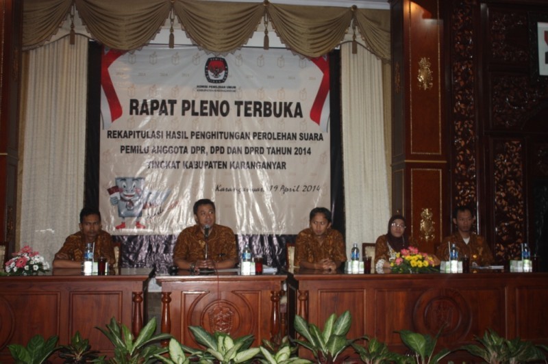 Ketua KPU Karanganyar, Sri Handoko mengatakan dalam pleno tersebut KPU menyampaikan seluruh hasil perolehan suara dari seluruh TPS se-Kabupaten Karanganyar mulai dari DPR RI, DPRD provinsi, DPRD kabupaten, dan DPD. Hasil tersebut dibacakan satu per satu oleh panitia di tingkat kecamatan. “Alhamdulillah lancar. Kita sampaikan semuanya dan ini juga disaksikan oleh para saksi dan pihak partai,” kata Handoko, Minggu (20/4).