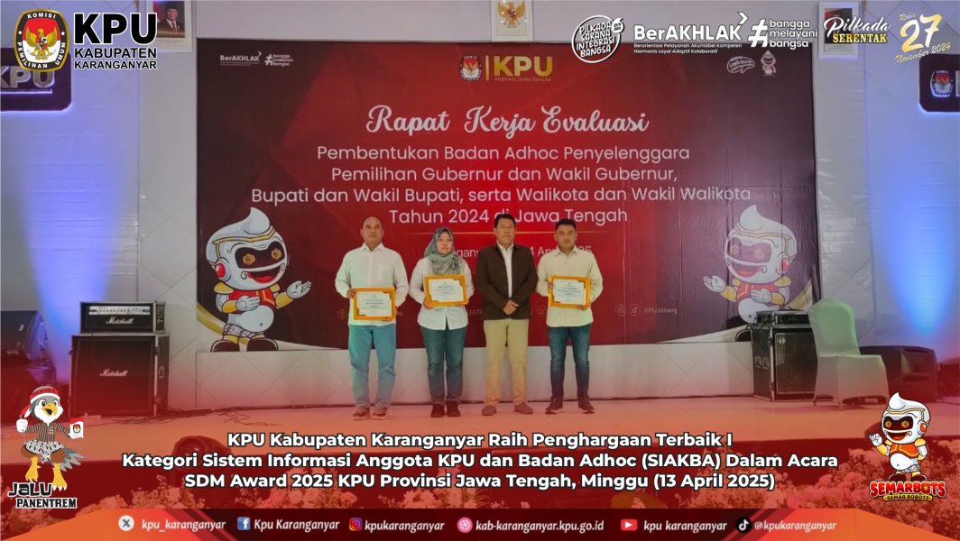 KPU Karanganyar Sabet Penghargaan Terbaik I Pengelolaan SIAKBA Se-Jateng