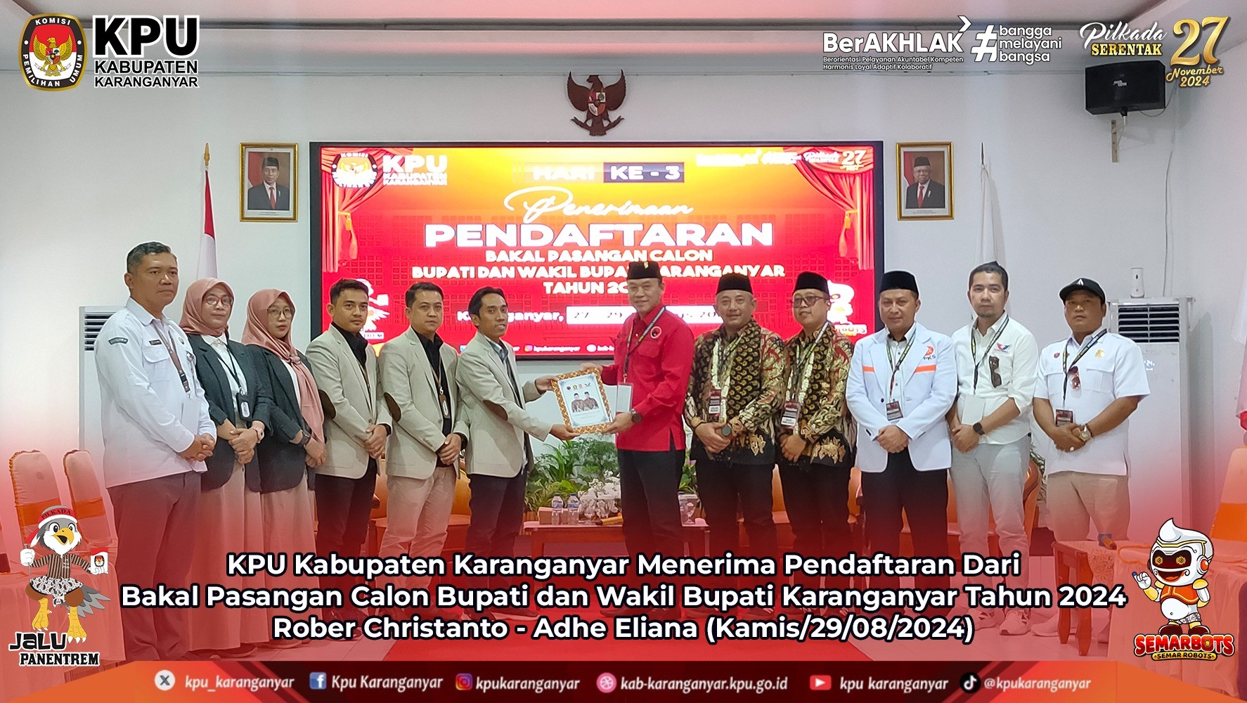 “Harapan kami, kita bersinergi bekerja Bersama untuk meningkatkan pemahaman masyarakat terhadap pentingnya pemilihan kepala daerah yang nantinya akan kita selenggarakan pada tanggal 27 November 2024. Semoga target untuk suksesnya penyelenggaraan pilkada tahun 2024 dapat terselenggara dengan baik dan lancar serta menghasilkan pemimpin-pemimpin yang terbaik untuk memimpin Jawa Tengah dan juga Kabupaten Karanganyar lima tahun ke depan,” ungkapnya.