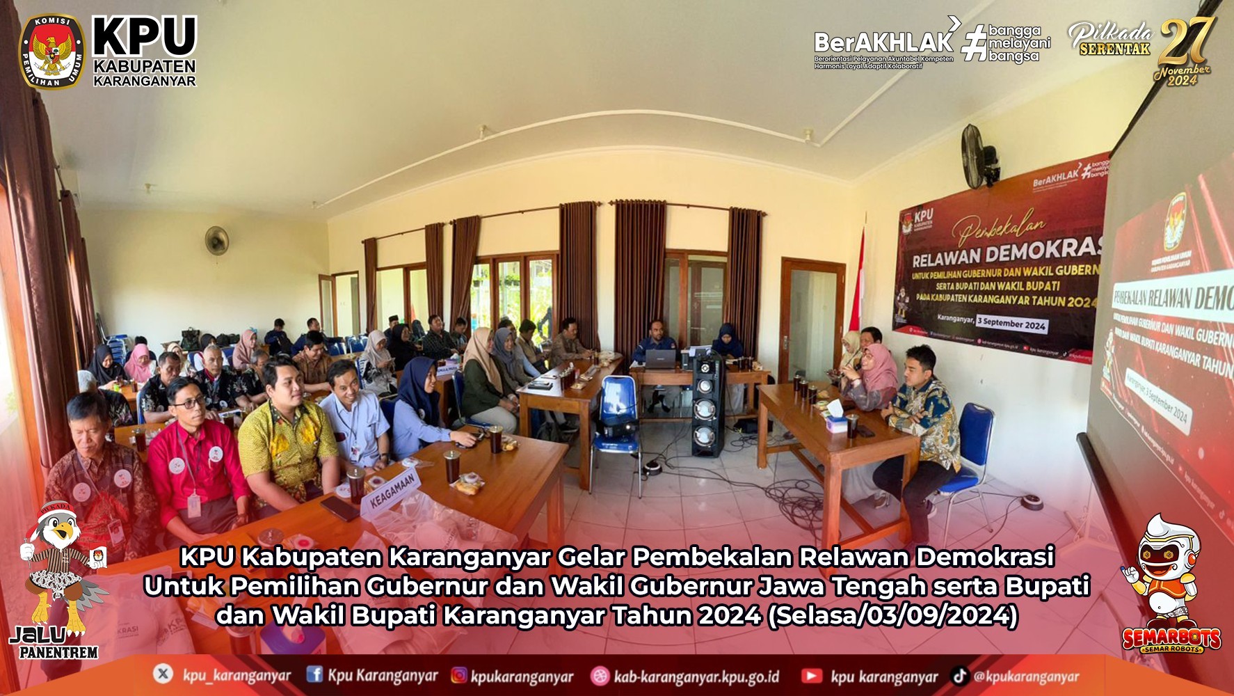 KARANGANYAR - Komisi Pemilihan Umum (KPU) Kabupaten Karanganyar, Selasa (03/9/2024) menggelar Pembekalan kepada 25 Relawan Demokrasi (Relasi) yang baru saja direkrut, bertempat di Pawon Ayu Resto Karanganyar.