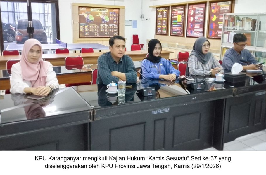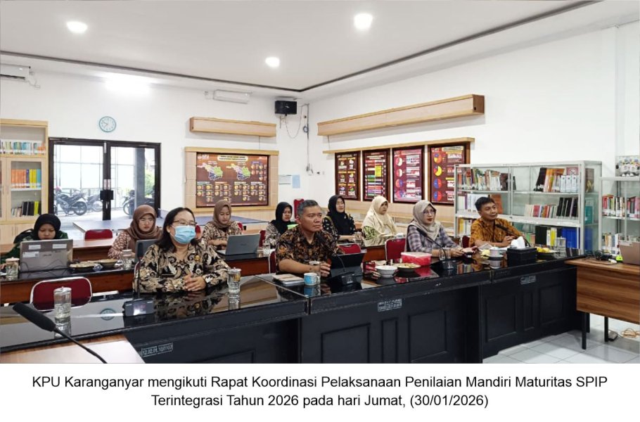 KARANGANYAR – Komisi Pemilihan Umum (KPU) Kabupaten Karanganyar mengikuti Rapat Koordinasi Pelaksanaan Penilaian Mandiri Maturitas Penyelenggaraan Sistem Pengendalian Intern Pemerintah (SPIP) Terintegrasi Tahun 2026 yang diselenggarakan oleh KPU Republik Indonesia bersama Badan Pengawasan Keuangan dan Pembangunan (BPKP), Jumat (30/1/2026). Kegiatan ini diikuti oleh KPU Provinsi/KIP Aceh serta KPU/KIP Kabupaten/Kota se-Indonesia. Ketua KPU Karanganyar dan Anggota Divisi Hukum Pengawasan bersama jajaran Satuan Tugas Sistem Pengendalian Intern Pemerintah (satgas SPIP) menyimak di Aula KPU Karanganyar. Rapat koordinasi dibuka Anggota Komisi Pemilihan Umum (KPU) Iffa Rosita. Disampaikan Iffa bahwa tujuan koordinasi ini untuk menyamakan persepsi dan meningkatkan pemahaman serta kesiapan satuan kerja dalam pelaksanaan penilaian mandiri Maturitas SPIP Terintegrasi Tahun 2026. Dalam rapat koordinasi tersebut, KPU RI bersama BPKP menyampaikan hasil evaluasi pelaksanaan Maturitas SPIP, antara lain perlunya penguatan perencanaan strategis agar lebih berorientasi pada output, peningkatan kapabilitas Aparat Pengawasan Intern Pemerintah (APIP), serta pelaksanaan evaluasi kode etik secara berkelanjutan. Selain itu, disampaikan pentingnya penguatan manajemen risiko, termasuk identifikasi risiko kemitraan dan potensi kecurangan (fraud), serta perlunya penyusunan kebijakan Indeks Efektivitas Pengendalian Korupsi (IEPK) melalui penerapan Sistem Manajemen Anti Penyuapan (SMAP). BPKP juga menekankan perlunya tindak lanjut atas catatan pemeriksaan Badan Pemeriksa Keuangan (BPK) serta penguatan komitmen pimpinan dalam menegakkan nilai integritas dan etika organisasi. KPU Kabupaten Karanganyar berkomitmen untuk menindaklanjuti hasil rapat koordinasi tersebut melalui penguatan koordinasi internal, penyiapan data dukung, serta perbaikan berkelanjutan dalam rangka meningkatkan Maturitas SPIP Terintegrasi di lingkungan KPU Kabupaten Karanganyar. (TNT)