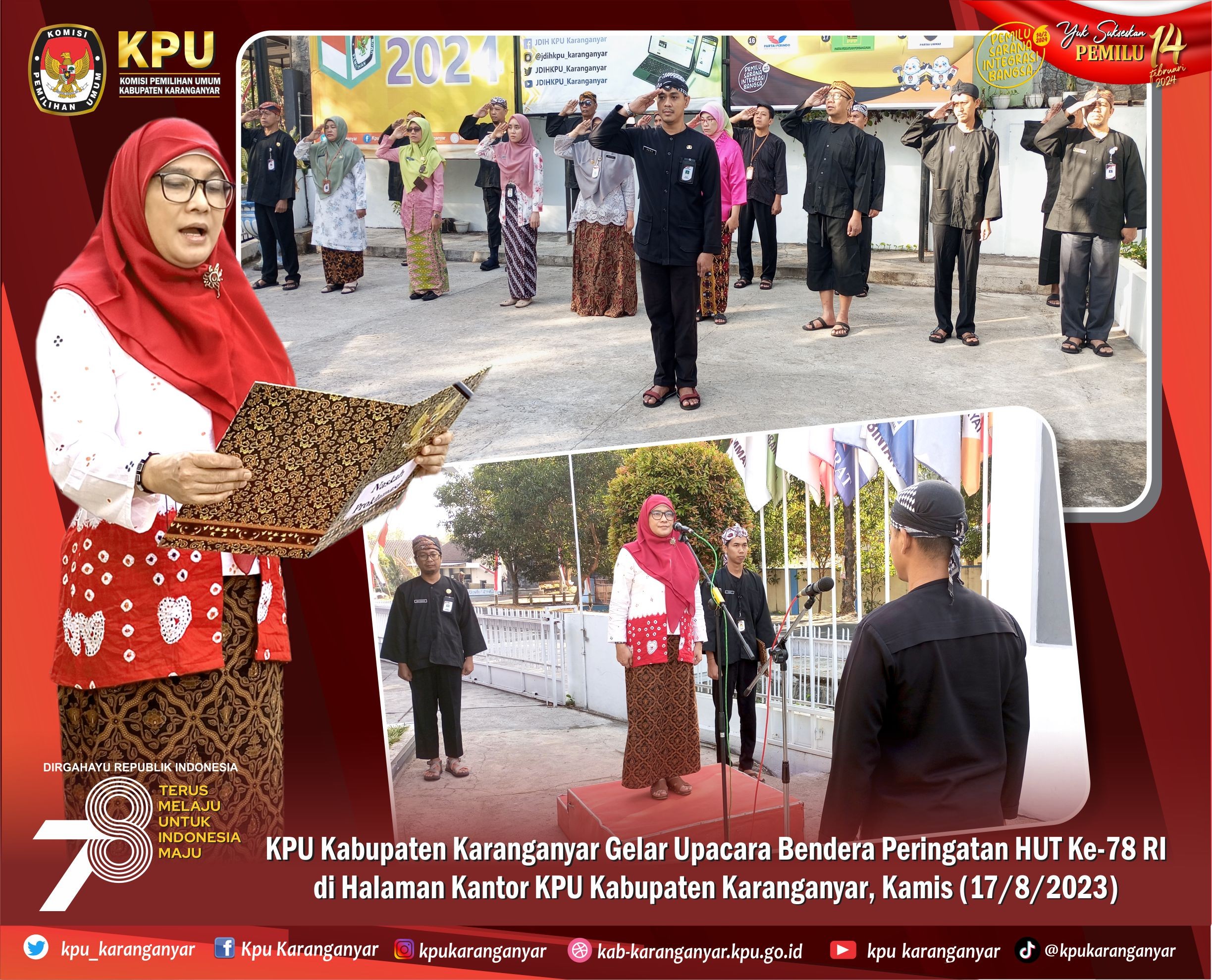 KPU Kabupaten Karanganyar Gelar Upacara Bendera Peringatan HUT Ke-78 RI di Halaman Kantor KPU Kabupaten Karanganyar, Kamis (17/8/2023).