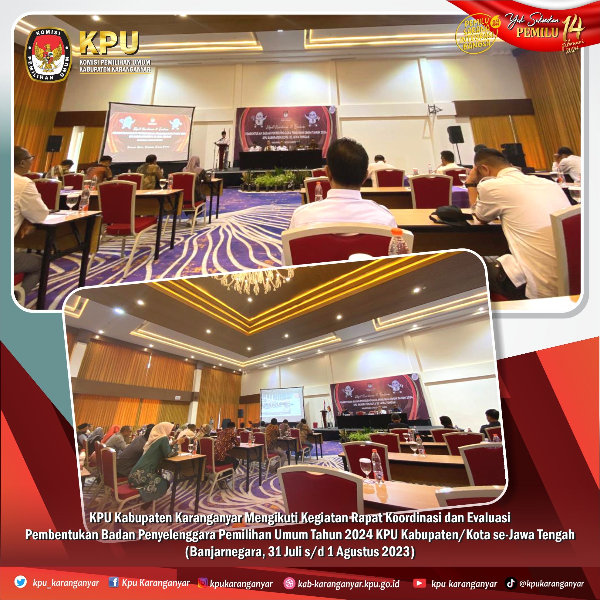 BANJARNEGARA – KPU Karanganyar yang diwakili oleh Ketua Divisi Sosialisasi, Pendidikan Pemilih, Partisipasi Masyarakat dan Sumber Daya Manusia, serta Sekretaris dan Operator SIAKBA mengikuti Evaluasi Pembentukan Badan Penyelenggara Pemilu 2024 yang diselenggarakan oleh KPU Provinsi Jawa Tengah di Banjarnegara, Senin s.d Selasa (31/07-01/08/2023). Evaluasi dilaksanakan untuk menghimpun kendala yang dialami saat proses pembentukan Badan Adhoc dalam Pemilu Tahun 2024. Paulus Widiyantoro, Ketua KPU Provinsi Jawa Tengah berkesempatan membuka sekaligus memberikan sambutan dan arahan kepada seluruh pesera rakor, dilanjutkan sambutan dari komisioner KPU Provinsi Jawa Tengah M. Taufiqurrohman, Ikhwanudin, dan Henri Wahyono. Dalam sambutannya, Paulus mengapresiasi kinerja KPU Kabupaten/Kota yang dapat melalui tahapan pembentukan badan ad hoc dengan sukses dan lancar sehingga tidak menimbulkan sengketa. “Kinerja KPU Kabupaten/Kota patut mendapat apresiasi dikarenakan baru pertama kali rekrutmen menggunakan aplikasi SIAKBA dan meskipun ada beberapa kendala namun KPU Kabupaten/Kota mampu menyelesaikan tahapan ini dengan baik dan lancar, namun begitu ada beberapa hal yang menjadi catatan sehingga perlu untuk dievaluasi” ujar Paulus. Dalam kesempatan tersebut, Ikhwanudin menyampaikan harapan bahwa setelah proses rekrutmen selesai, badan penyelenggara yang telah terbentuk dapat melaksanakan tugasnya secara kontinyu sampai dengan berakhirnya tahapan pemilu 2024. Sedangkan Henri Wahyono menuturkan jika KPU Kabupaten/Kota juga harus bersiap untuk persiapan pembentukan KPPS sesuai dengan TPS yang telah ditetapkan. Sementara Sekretaris KPU Provinsi Jawa Tengah, Rudinal mengimbau kepada para pengelola data Badan Ad Hoc di KPU Kabupaten/Kota agar selalu memelihara database Badan Penyelenggara yang telah tersimpan dalam SIAKBA dengan tujuan untuk berjaga-jaga apabila ada permintaan data. Dalam kegiatan yang berlangsung selama 2 (dua) hari tersebut, Taufiqurrohman selain menyampaikan materi evaluasi pembentukan Badan Penyelenggara juga memaparkan Daftar Inventarisasi Masalah (DIM) bekaitan dengan kendala-kendala yang dihadapi oleh KPU Kabupaten/Kota yang disebabkan oleh beberapa faktor diantaranya kebutuhan aturan/ketentuan yang belum ada dalam regulasi, kepastian implementasi regulasi, perlunya tafsir operasional regulasi, ekstensi regulasi, kelalaian manusia, dan Permasalahan non regulatif. (lul)