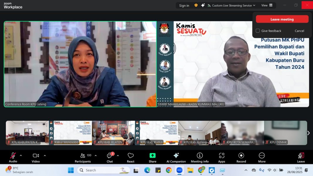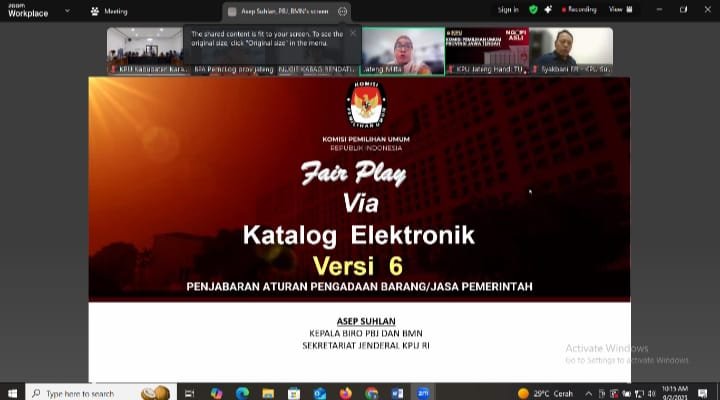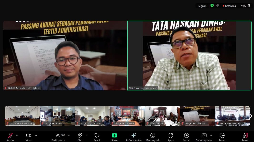 KARANGANYAR – Seluruh pegawai Komisi Pemilihan Umum (KPU) Kabupaten Karanganyar mengikuti kegiatan diskusi virtual Ngopi Asli (Ngobrol Pinter Arsip dan Logistik) yang diselenggarakan oleh KPU Provinsi Jawa Tengah pada Selasa, 2 September 2025. Acara berlangsung interaktif melalui Zoom Meeting dengan partisipasi aktif dari KPU Kabupaten/kota se-Jawa Tengah. Mengusung tema “Fair Play: Via E-Katalog Penjabaran Aturan Pengadaan Barang/Jasa Pemerintah”, kegiatan ini bertujuan untuk meningkatkan pemahaman proses-proses pengadaan barang dan jasa melalui E-Katalog Versi 6 dengan sebaik-baiknya pada lembaga KPU agar pelaksanaannya sesuai dengan regulasi kelembagaan. Dalam sambutannya, Ketua Komisi Pemilihan Umum (KPU) Jawa Tengah, Handi Tri Ujiono, menekankan pentingnya memahami E-Katalog Penjabaran Aturan Pengadaan Barang/Jasa Pemerintah dalam manfaatnya lembaga dapat berjalan secara adil, transparansi dan akuntabilitas. Dengan mengikuti kegiatan ini, diharapkan dapat menimalisir dan mencegah kecurangan-kecurangan pada satuan kerja. Sementara itu, Asep Suhlan, Kepala Biro Pengadaan Barang/Jasa dan Barang Milik Negara (BMN) KPU Republik Indonesia, memaparkan materi teknis mengenai proses pengadaan barang dan jasa. Ia menjelaskan bahwa risiko penyalahgunaan PBJ mencapai 97 % di kementerian atau lembaga dan 99% di pemerintah daerah. Temuan ini berdasarkan jawaban dari 53% responden internal yang mengakui adanya penyalahgunaan di sektor ini, sehingga perlu dipastikan dengan adannya E-Katalog Versi 6 ini barang dan jasa dapat mengurangi diskriminatif yang ada. “Seperti halnya fair play yang tepat dalam permainan bola, pengadaan barang dan jasa harus mempunyai aturan main yang jelas dan sama. Dalam pengadaan, fair play memastikan barang/jasa tepat mutu, tepat waktu, tepat biaya dan memberi manfaat bagi masyarakat. Melalui forum daring ini, peserta mendapatkan penjelasan mendalam mengenai regulasi terbaru pengadaan barang/jasa pemerintah melalui E-Katalog versi 6, yang menekankan transparansi, akuntabilitas, dan efisiensi. Acara yang dimoderatori oleh Sabbikisma Setya Nugraha, Kepala Bagian Perencanaan, Data dan Informasi KPU Provinsi Jawa Tengah ini berlangsung hangat, interaktif, dan penuh semangat kolaborasi antar KPU se-Jawa Tengah. (MJ)