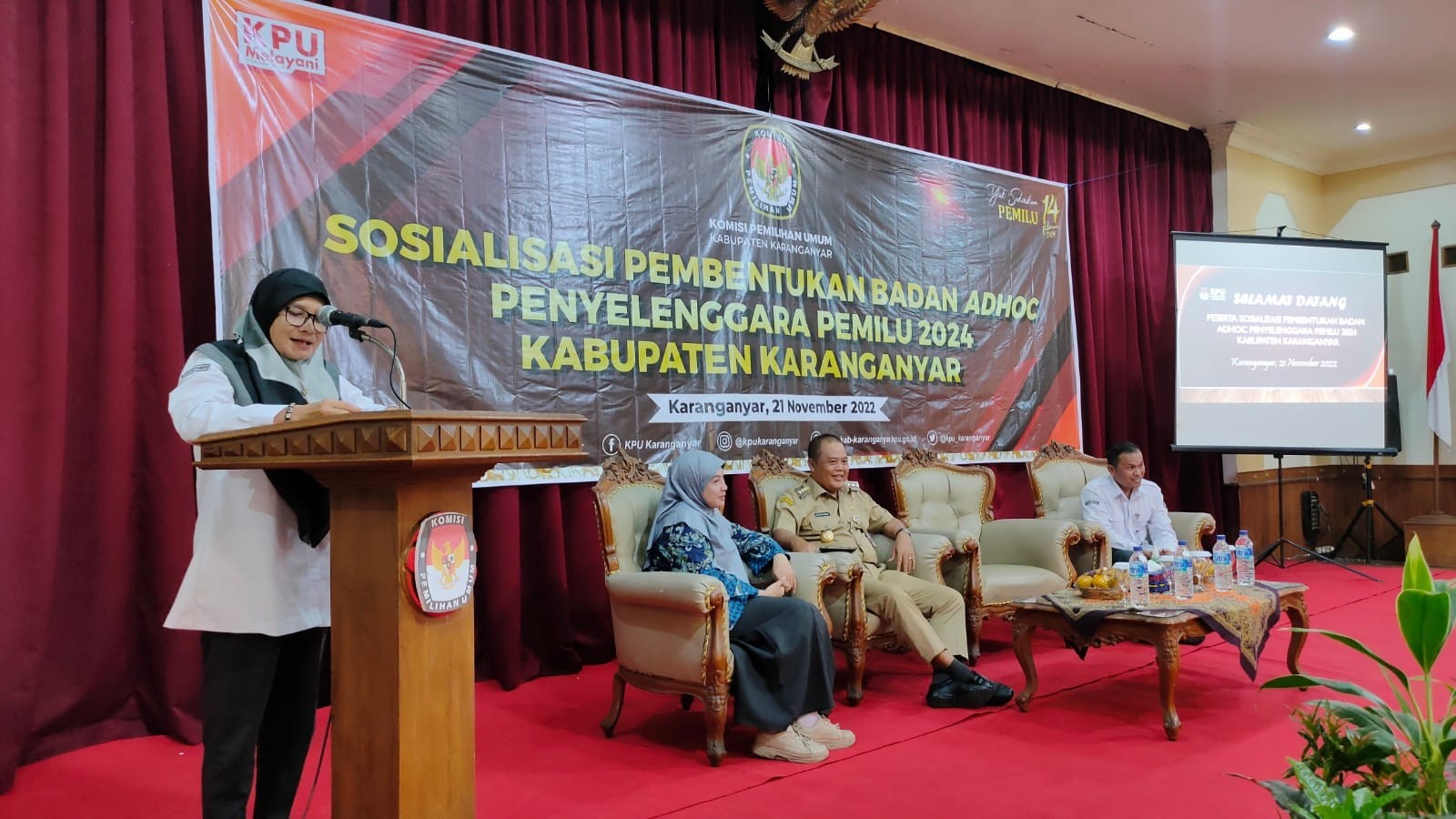 Bupati Karanganyar, Juliyatmono, menyebutkan bahwa pemerintah kabupaten siap memfasilitasi kebutuhan terkait Sosialisasi Pembentukan Badan Adhoc. Bupati menghimbau kepada jajaran camat dan kepala desa se-Karanganyar untuk mensosialisasikan Pembentukan Badan Adhoc kepada masyarakat.