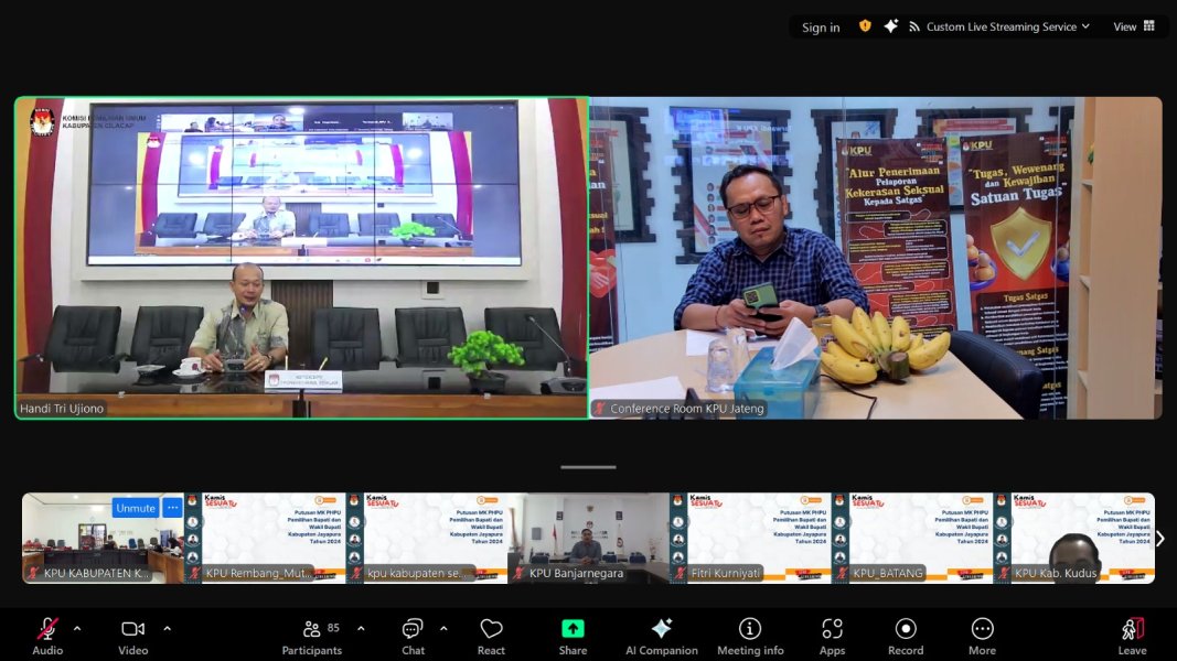 KARANGANYAR – Komisi Pemilihan Umum (KPU) Kabupaten Karanganyar mengikuti Kajian Hukum Kamis Sesuatu seri ke-16 terkait sengketa Pemilihan Bupati dan Wakil Bupati Buru Provinsi Maluku Tahun 2024 yang diselenggarakan oleh KPU Provinsi Jawa Tengah secara daring melalui Zoom Meeting, Kamis (28/8/2025). Dalam kesempatan tersebut, KPU Kabupaten Karanganyar diwakili oleh Divisi Hukum dan Pengawasan bersama staf Subbagian TPPPH. Selain itu, kegiatan ini diikuti jajaran KPU provinsi dan kabupaten/kota se-Jawa Tengah sebagai forum pembelajaran dan pendalaman hukum kepemiluan. Akmaliyah, S.Pd.I., M.Pd., anggota KPU Provinsi Jawa Tengah Divisi Sosdiklih, Parmas, dan SDM dalam sambutannya menegaskan pentingnya konsistensi lembaga penyelenggara pemilu dalam memahami putusan pengadilan. “Kajian hukum ini bukan sekadar membahas perkara, tetapi juga sebagai sarana pembelajaran bersama agar setiap pengalaman hukum di daerah bisa menjadi bahan evaluasi nasional,” ujarnya. Kajian Hukum menghadirkan narasumber Faisal Amin Mamulaty, Divisi Hukum dan Pengawasan KPU Kabupaten Buru) dan Khasis Munandar, Divisi Hukum dan Pengawasan KPU Kabupaten Banyumas. Serta Syarif Mahulauw, Divisi Hukum dan Pengawasan KPU Provinsi Maluku, bertindak sebagai pemantik diskusi. Faisal Amin Mamulaty menguraikan perjalanan panjang sengketa Pemilihan Bupati dan Wakil Bupati Buru Tahun 2024, mulai dari gugatan awal hingga putusan lanjutan. “Untuk memahami putusan MK, kita harus menelusuri sejarah perjalanan sengketa dari putusan pertama sampai putusan berikutnya. Dari sana, kita bisa melihat bagaimana hukum bekerja secara bertahap,” jelasnya. Putusan Mahkamah Konstitusi (MK) Nomor 174/PHPU.BUP-XXIII/2025 dan 314/PHPU.BUP-XXIII/2025 terkait sengketa Pilbup Buru, lanjut Faisal, pada pokoknya memerintahkan Pemungutan Suara Ulang (PSU) di Desa Debowae, Kecamatan Waelata, serta Penghitungan Suara Ulang di Desa Namlea, Kecamatan Namlea. Persoalan muncul lantaran ditemukan sejumlah dugaan pelanggaran, mulai dari pemilih ganda, penggelembungan suara, kotak suara tidak tersegel, hingga adanya pemilih menggunakan e-KTP luar provinsi. Khasis Munandar menilai bahwa meskipun berbagai dalil diajukan pemohon, sebagian besar dianggap tidak terbukti oleh MK. “Secara substansi, pelaksanaan Pemilihan di Kabupaten Buru sudah sesuai prosedur. MK hanya mengabulkan sebagian dalil yang benar-benar terbukti dan berdampak pada hasil,” katanya. Sementara itu, Syarif Mahulauw menegaskan bahwa kasus di Kabupaten Buru menjadi pembelajaran nasional. “Sengketa seperti ini memberi pelajaran penting bagi kita semua agar tidak hanya patuh pada prosedur, tapi juga memastikan integritas di lapangan benar-benar terjaga,” tutur Faisal. Kajian hukum ditutup oleh Muslim Aisha, Anggota KPU Provinsi Jawa Tengah Divisi Hukum dan Pengawasan. Dalam penutupannya, beliau menyampaikan pandangan terkait pelaksanaan tahapan pemungutan suara serta menyajikan kesimpulan dan tindak lanjut atas sengketa hasil Pilkada yang terjadi di Kabupaten Bulu. “Diskusi ini mengungkap bagaimana sebagian dalil pemohon dinilai beralasan menurut hukum, sementara sebagian lainnya hanya bersifat administratif atau tidak terbukti. Dalam kajian hukum ini penting untuk disimak secara mendalam duduk perkara, pokok-pokok permohonan, serta pertimbangan hukum yang dijadikan dasar Mahkamah Konstitusi dalam menjatuhkan putusan,” ujar Muslim. (AB)