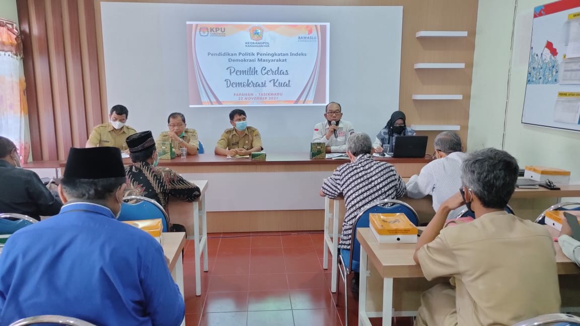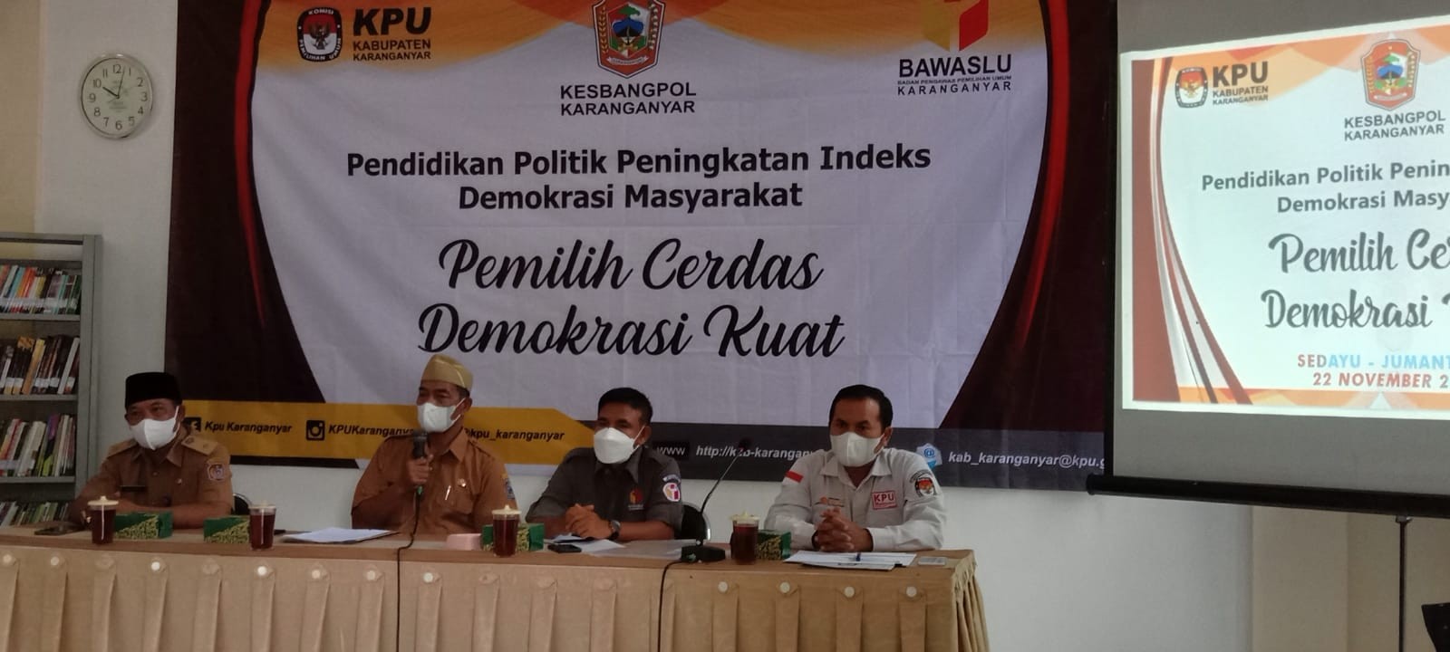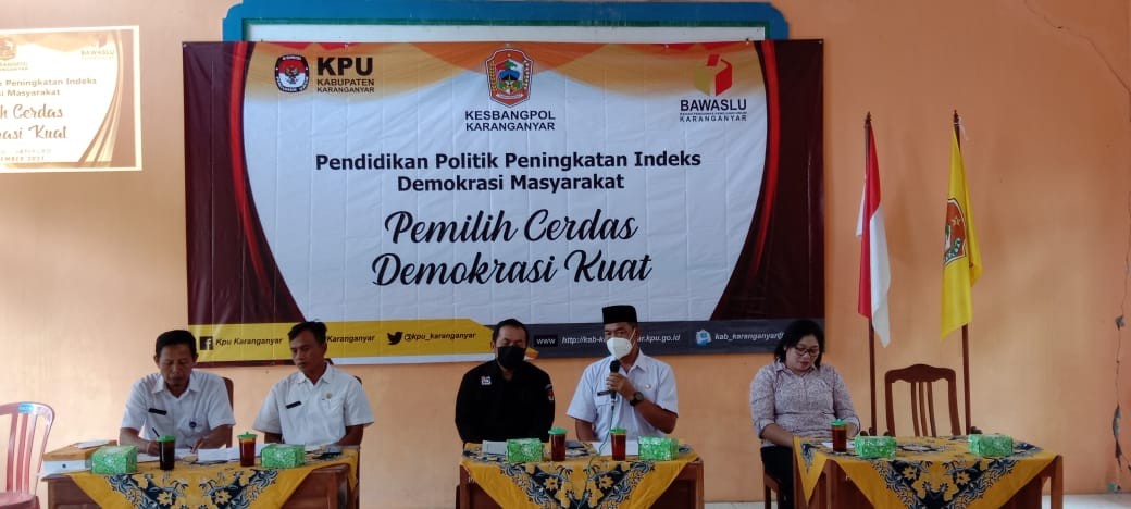 KARANGANYAR – Mewujudkan pemilih cerdas untuk Pemilu 2024 bukan hanya tertumpu pada KPU, namun juga seluruh stakeholder Pemilu dan masyarakat berkewajiban ikut andil mewujudkannya. Bersama Badan Kesatuan Bangsa dan Politik (Bakesbangpol) Kabupaten Karanganyar, KPU Karanganyar berikhtiar mewujudkan Pemilu 2024 yang berkualitas serta bermartabat. Dalam Kegiatan bertajuk Pemilih Cerdas, Demokrasi Kuat, Bawaslu juga dilibatkan pada kegiatan ini. Kegiatan yang berlangsung di Balai Desa Seloromo, Kecamatan Jenawi, Rabu (24/11/2021), menghadirkan Tokoh Masyarakat dari berbagai unsur antara lain Ketua BPD, Perangkat Desa, Ketua dan anggota PKK, Tokoh Masyarakat, Tokoh Agama, Karang Taruna, Kelompok Disabilitas, Kelompok Sektoral/Marjinal di Wilayah Desa Seloromo sebagai peserta. Kepala Bidang Politik Dalam Negeri dan Organisasi Masyarakat Bakesbangpol Kabupaten Karanganyar, Eka Mardiyanta, menyampaikan bahwa peran pemerintah desa dalam meningkatkan partisipasi politik sangatlah diperlukan, karena pemerintah desa merupakan bagian pemerintah yang paling dekat dengan masyarakat serta mengenal karakteristik masyarakat setempat. “Dengan kegiatan ini, diharapkan Desa Seloromo tidak lagi masuk dalam 10 besar suara tidak sah pada Pemilu tahun 2024,“ pungkas Eka. Muhammad Maksum, selaku Anggota KPU Karanganyar, menyampaikan bahwa Seloromo menduduki peringkat 10 desa dengan suara tidak sah terbanyak di Kabupaten Karanganyar. Surat suara tidak sah dapat disebabkan karena beberapa hal, antara lain ketidaktahuan pemilih dalam menggunakan hak suaranya, terkait dengan ekspresi politik pemilih yang dikenal dengan protes voting, terkait dengan electoral malpractice termasuk perbedaan pandangan tentang aturan pemberian suara maupun kesalahan teknis di lapangan. "Semua itu dapat diminimalisir dengan menjadi pemilih yang cerdas dan aktif dalam mencari informasi, KPU menyediakan sarana untuk menggali informasi melalui laman KPU RI di www.kpu.go.id serta untuk laman KPU Kabupten Karanganyar di www.kab-karanganyar.kpu.go.id," lanjut Maksum. Dalam kesempatan selanjutnya, Anggota Bawaslu, Edi Budi Susilo, menyampaikan materi dengan tajuk Peran serta Masyarakat dalam pengawasan Pelaksanaan pemilu. Dalam paparannya Edi menyampaikan bahwa masyarakat dapat mengambil peran sebagai Pengawas, Pelaksana maupun peserta dalam event Pemilu/Pemilihan. Terkait surat suara tidak sah, menurut Edi, hal itu merupakan salah satu kritik masyarakat kepada pemerintah namun disisi lain hal itu merusak hak yang mereka miliki untuk membangun bangsa melalui para pemimpin yang dapat mereka pilih secara langsung. “Masyarakat diharapkan ikut berpartisipasi dalam pengawasan dengan melakukan laporan pelanggaran yang terjadi kepada pangawas/Bawaslu”, ujar Edi (WL)