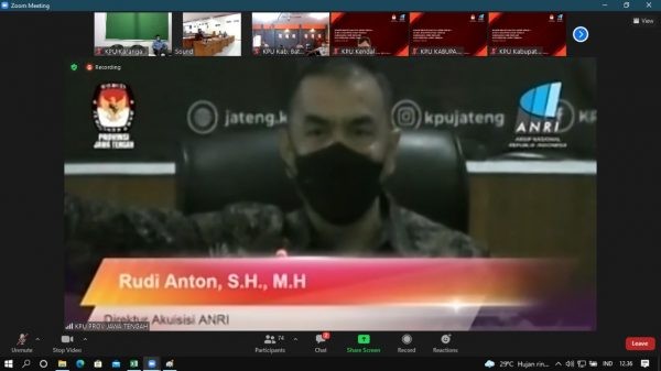 KARANGANYAR – Berbagai upaya dilakukan KPU dalam rangka penyelamatan arsip Pemilu, salah satunya dengan menjalin kerjasama dengan pihak yang berkompeten dalam Lembaga kearsipan. Demikian gagasan yang muncul dalam Rapat Koordinasi Penyelamatan Arsip Pemilu yang diselenggarakan KPU Provinsi Jawa Tengah bekerjasama dengan Arsip Nasional Republik Indonesia (ANRI), Kamis (17/06/2021) kemarin. Ketua KPU Provinsi Jawa Tengah, Julianto Sudrajat menyampaikan perlu adanya pendokumentasian terhadap arsip yang dikuasai oleh KPU sesuai dengan Jadwal Retensi Arsip (JRA). KPU melakukan upaya penyelamatan arsip Pemilu melalui kerjasama dengan berbagai pihak, khususnya dengan ANRI maupun Lembaga Kearsipan Daerah sesuai dengan tingkatannya. “Kebutuhan mutlak bahwa KPU harus berkomitmen sesuai regulasi dan kewenangan yang ada. Arsip Pemilu harus diselamatkan dan sewaktu- waktu dibutuhkan akan mudah di akses dan dapat memberikan sumbangsih kepada masyarakat,” kata Drajat, panggilan akrabnya. Rakor yang dilaksanakan secara daring melalui zoom meeting diikuti oleh Ketua dan Anggota KPU, Sekretaris beserta Kasubbag di 35 KPU Kabupaten/Kota Se Jawa Tengah. Ketua dan Anggota KPU Karanganyar beserta Sekretaris dan Kasubbag menyimak dengan seksama Rakor tersebut. Ketua KPU Karanganyar, Triastuti Suryandari menyambut baik hasil koordinasi KPU se Jawa Tengah. “KPU Karanganyar sedang memulai pekerjaan kearsipan. Kita sedang menyiapkan sarana dan prasarana untuk penyelamatan arsip. Kemarin KPU Karanganyar sudah berkoordinasi dengan dinas arsip daerah,” jelas Trias. Direktur Akuisisi Direktorat Akuisisi Arsip Nasional Republik Indonesia, Rudi Anton menyampaikan bahwa Penyelenggaraan Kearsipan tersebut bertujuan untuk menjamin keselamatan dan keamanan arsip sebagai bukti pertanggungjawaban dalam kehidupan bermasyarakat, berbangsa, dan bernegara serta Menjamin keselamatan aset nasional dalam bidang ekonomi, sosial, politik, budaya, pertahanan, serta keamanan sebagai identitas dan jatidiri bangsa. “Sesuai pasal 33 UU Nomor 43 Tahun 2009, arsip yang tercipta dari kegiatan lembaga negara dan kegiatan yang menggunakan sumber dana negara dinyatakan sebagai arsip milik negara. Arsip pemilu adalah naskah tentang penyelenggaraan Pemilu Anggota DPR, DPD, DPRD Provinsi dan DPRD Kabupaten/Kota serta Pemilu Presiden dan Wakil Presiden yang dilaksanakan oleh Komisi Pemilihan Umum, Komisi Pemilihan Umum Provinsi dan Komisi Pemilihan Umum Kabupaten/Kota, ucap Rudi. Lebih lanjut Rudi menyebut KPU sebagai lembaga pencipta arsip kepemiluan, upaya untuk penyelamatan arsip tersebut perlu melakukan pendataan, penataan dan pendaftaran arsip/dokumen pemilu yang dilaksanakan oleh masing-masing unit kerjanya. Untuk melakukan penilaian arsip KPU bisa dibantu oleh ANRI dan lembaga Kearsipan Daerah. Dalam melakukan penyimpanan arsip/dokumen dinamis kegiatan Pemilu bisa dilaksanakan oleh KPU. Untuk arsip statis KPU menyampaikan kepada Lembaga kearsipan untuk melakukan akuisisi dengan penyerahan arsip statis. (TRI)