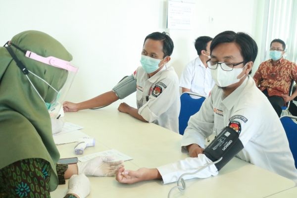KARANGANYAR – Setelah melalui hari libur dan cuti bersama Hari Raya Idul Fitri, Senin (17/05/2021) KPU Karanganyar mulai efektif masuk kerja dengan melaksanakan apel pagi dilanjutkan dengan Halal Bihalal bersama seluruh pegawai, bertempat di halaman kantor pukul 08.00 WIB. Triastuti Suryandari, Ketua KPU Karanganyar, dalam amanat apel mengucapkan rasa terima kasih kepada seluruh pegawai yang telah mempersiapkan apel spesial hari ini dan hadir tepat waktu. Dalam situasi kondisi pandemi Covid-19 yang masih berlangsung sampai dengan saat ini, sangat penting bagi kita untuk tetap terus menerapkan protokol kesehatan, walaupun kita sudah divaksinasi tahap pertama. “Hal ini sebagai bentuk dukungan kepada Pemerintah dalam mencegah penularan Covid-19,” himbau Trias. Triastuti dalam amanatnya juga menyampaikan arti pentingnya silaturahmi dan saling memaafkan. “Silaturahmi adalah menyambung tali persaudaraan, menjalin kekerabatan. Silaturahmi dapat kita lakukan kapan saja, namun amalan ini menjadi salah satu agenda utama saat momen hari raya Idul Fitri,” ujar Triastuti. Manfaat silaturahmi, terangnya, diantaranya adalah sarana mendekatkan diri kita kepada Allah SWT, menjaga kerukunan dan keharmonisan, menjauhkan kita dari siksa neraka, menjadikan kita sebagai makhluk Allah yang mulia, melapangkan rejeki dan memperpanjang usia. Ditambahkan oleh Trias, manusia pasti tak pernah luput dari berbuat kesalahan. Untuk melebur kesalahan bisa dilakukan dengan saling memaafkan. Dan dengan saling memaafkan hati dan pikiran bisa menjadi tenang. Oleh karena itu penting sekali sikap saling memaafkan. “Dengan bersilaturahmi dan saling maaf-memaafkan semoga bisa membawa keberkahan dan kebaikan bagi semua,” lanjutnya. Di akhir acara, dilakukan prosesi Halal Bihalal dengan seluruh pegawai tanpa bersalam-salaman, dengan tetap mengutamakan dan menerapkan protokol kesehatan. (mik)