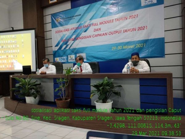 SRAGEN – KPU Karanganyar mengikuti kegiatan sosialisasi Aplikasi Sistem Akuntansi Keuangan Tingkat Instansi (SAKTI) Full Module Tahun 2021 dan Tata Cara Pengisian Pencapaian Output Tahun 2021, yang diselenggarakan oleh Kantor Pelayanan Perbendaharaan Negara (KPPN) Sragen, Senin (29/3/2021). Kegiatan yang digelar di aula KPPN Sragen Jl. Sukowati No. 15 C Sragen, untuk hari pertama diikuti oleh operator Aplikasi SAKTI dari 18 Satker di wilayah Kabupaten Karanganyar. Dalam kesempatan tersebut KPU Karanganyar menugaskan Tanti, selaku Operator Aplikasi SAKTI.