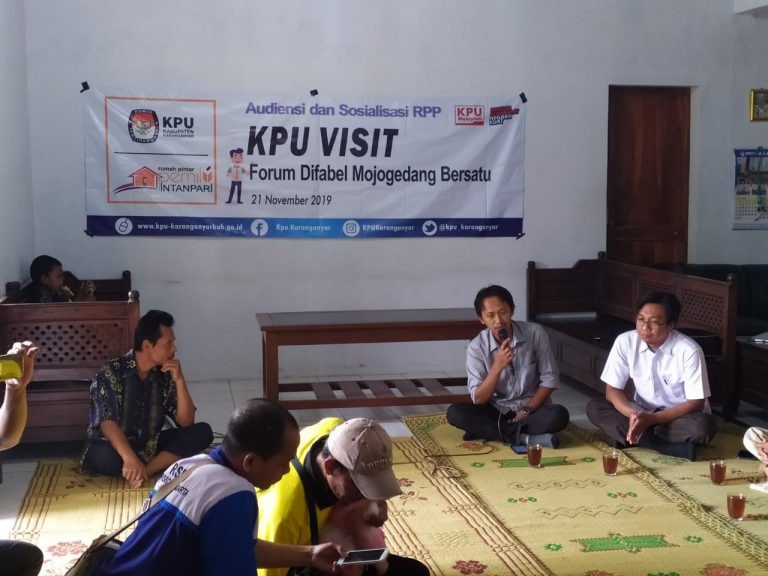 Kegiatan tersebut dilaksanakan di Dusun Gondangmanis RT. 02/07, Desa Sewurejo, Mojogedang yang bertujuan untuk mengenalkan Program Rumah Pintar Pemilu (RPP) Intanpari KPU Kabupaten Karanganyar kepada masyarakat difabel sehingga mereka paham tentang Pemilu.