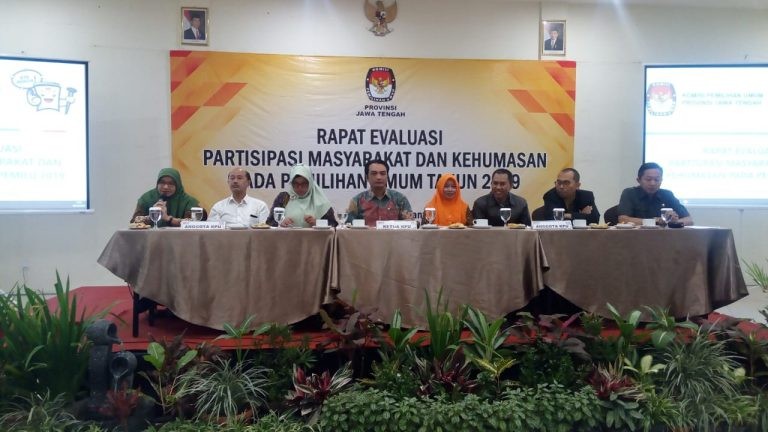 KPU Provinsi Jawa Tengah menggelar Rapat Evaluasi Partisipasi Masyarakat dan Kehumasan pada Pemilu 2019. Acara yang berlangsung di Nava Hotel Tawangmangu ini berlangsung selama 2 hari, yaitu tanggal 8-9 Oktober 2019. Dengan dihadiri oleh Anggota KPU Divisi Sosialisasi dan Staf Sekretariat KPU Kab/Kota se Jawa Tengah. Ketua KPU Kabupaten Karanganyar, Triastuti Suryandari, selaku tuan rumah memberikan sambutan sekaligus ucapan selamat datang. Dalam sambutannya beliau menyebutkan bahwa saat ini KPU Karanganyar sedang menyelenggarakan Pendidikan Pemilih Berbasis Pemilih Pemula dengan sasaran sekolah-sekolah. Wisata dan kuliner di Karanganyar ada banyak. Selanjutnya sambutan dari Ketua KPU Provinsi Jawa Tengah, Yulianto Sudrajat, sekaligus membuka acara rapat tersebut. Beliau menyampaikan bahwa target kuantitatif pemilih untuk Pemilu mendatang, pemilih dibangun atas dasar kesadarannya. Membangun dan memperkokoh Pemilu mendatang adalah tugas KPU. Nantinya KPU harus bisa membuat pers rilis, mampu menjawab setiap pertanyaan di sosial media, membangkitkan kembali sosial media dalam rangka meningkatkan partisipasi masyarakat dan kehumasan, imbuhnya.