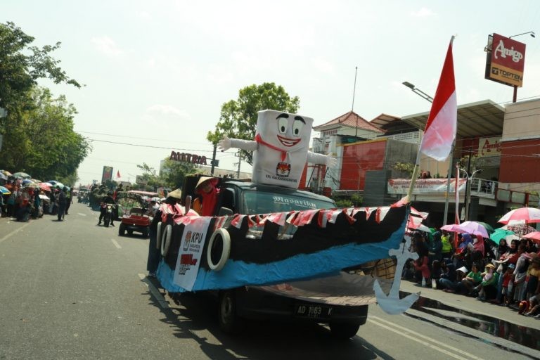 Meriahkan HUT RI ke-74 KPU Kabupaten Karanganyar berpartisipasi dalam Karnaval Pembangunan yang diselenggarakan Pemerintah Kabupaten Karanganyar, 24 Agustus 2019.