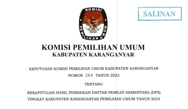 KEPUTUSAN KPU KARANGANYAR NOMOR 289 TAHUN 2023 TENTANG REKAPITULASI HASIL PERBAIKAN DPS Jumat, 12 Mei 2023 21:23 163 DOWNLOAD KEPUTUSAN DOWNLOAD BERITA ACARA Baca Selengkapnya