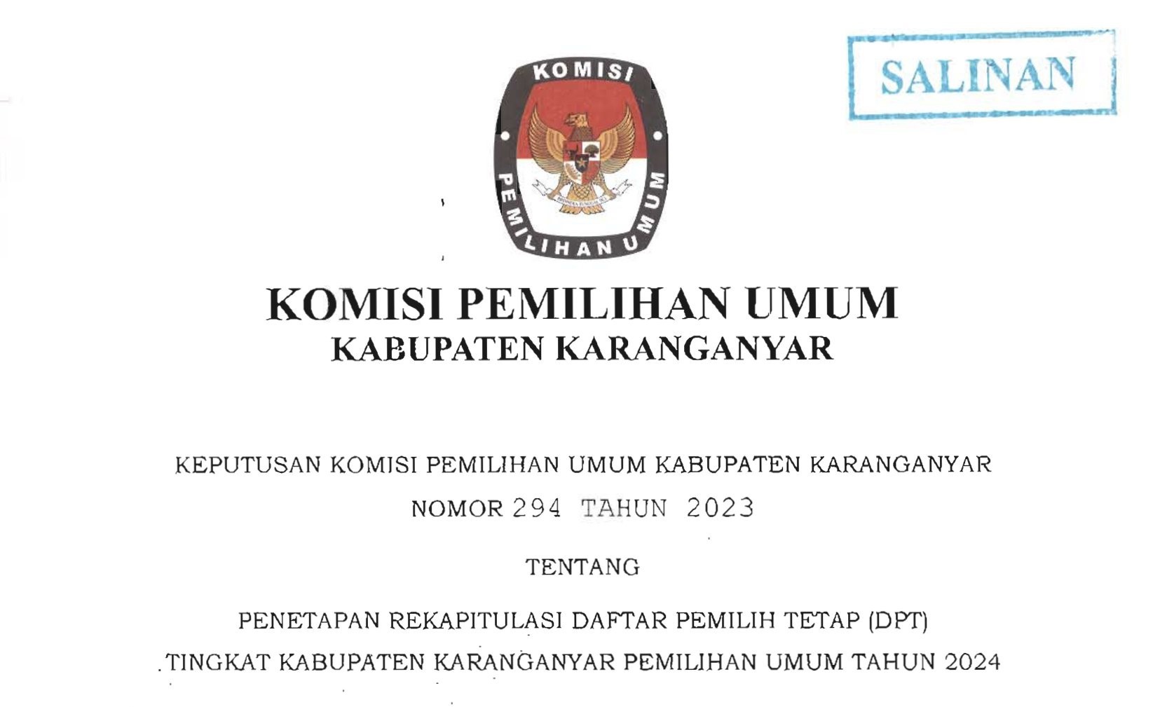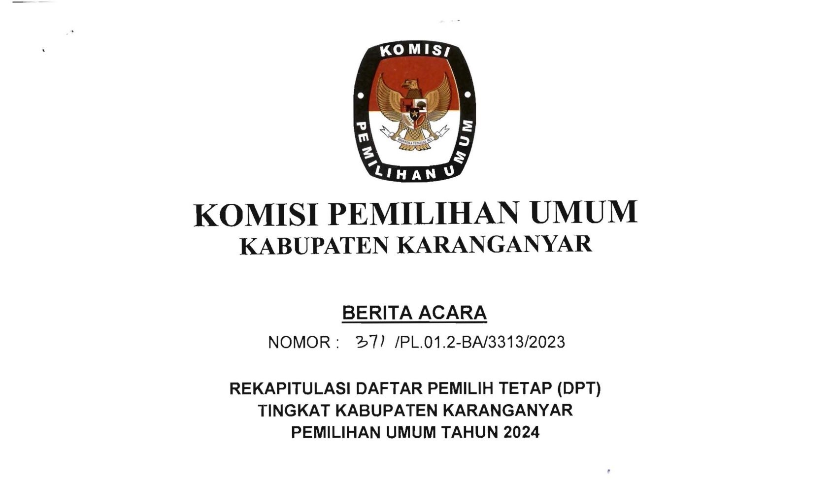 BERITA ACARA REKAPITULASI DPT KABUPATEN KARANGANYAR PEMILU TAHUN 2024 Kamis, 22 Juni 2023 14:45 451 DOWNLOAD BA REKAPITULASI DPT BYNAME SALINAN DAFTAR PEMILIH TETAP (MODEL A-KABKO DAFTAR PEMILIH) Baca Selengkapnya