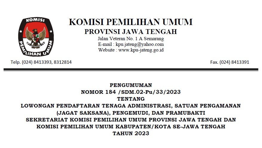 PENGUMUMAN PENETAPAN HASIL SELEKSI TERTULIS PPS UNTUK PEMILU 2024 Minggu, 15 Januari 2023 05:22 900 DOWNLOAD PENGUMUMAN Baca Selengkapnya