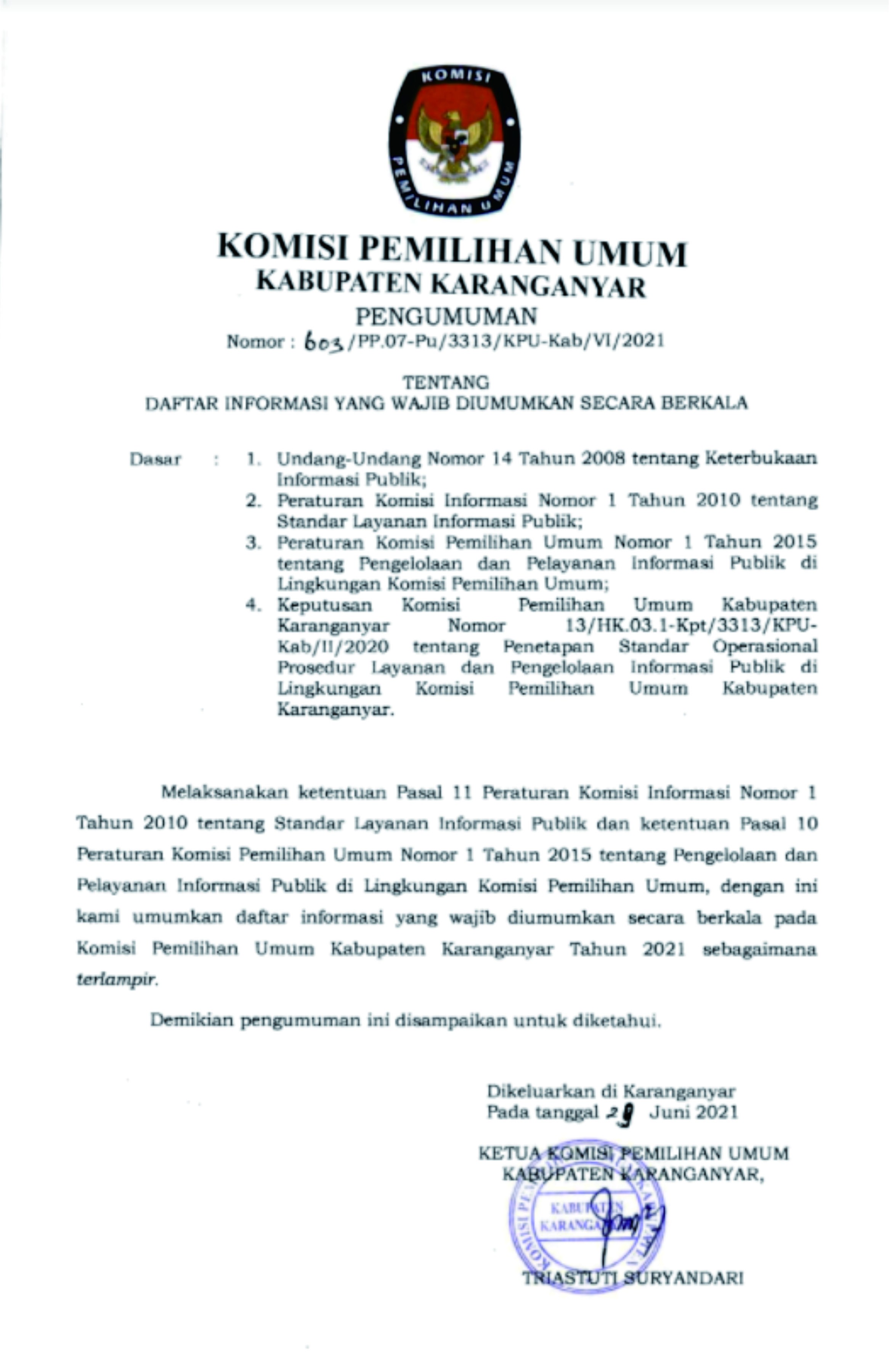 PENGUMUMAN TENTANG DAFTAR INFORMASI YANG WAJIB DIUMUMKAN SECARA BERKALA Rabu, 30 Juni 2021 00:00 37 Pengumuman Tentang Daftar Informasi yang Wajib Diumumkan Secara Berkala DOWNLOAD Download pengumuman : https://bit.ly/pengumumanberkala2021 Baca Selengkapnya