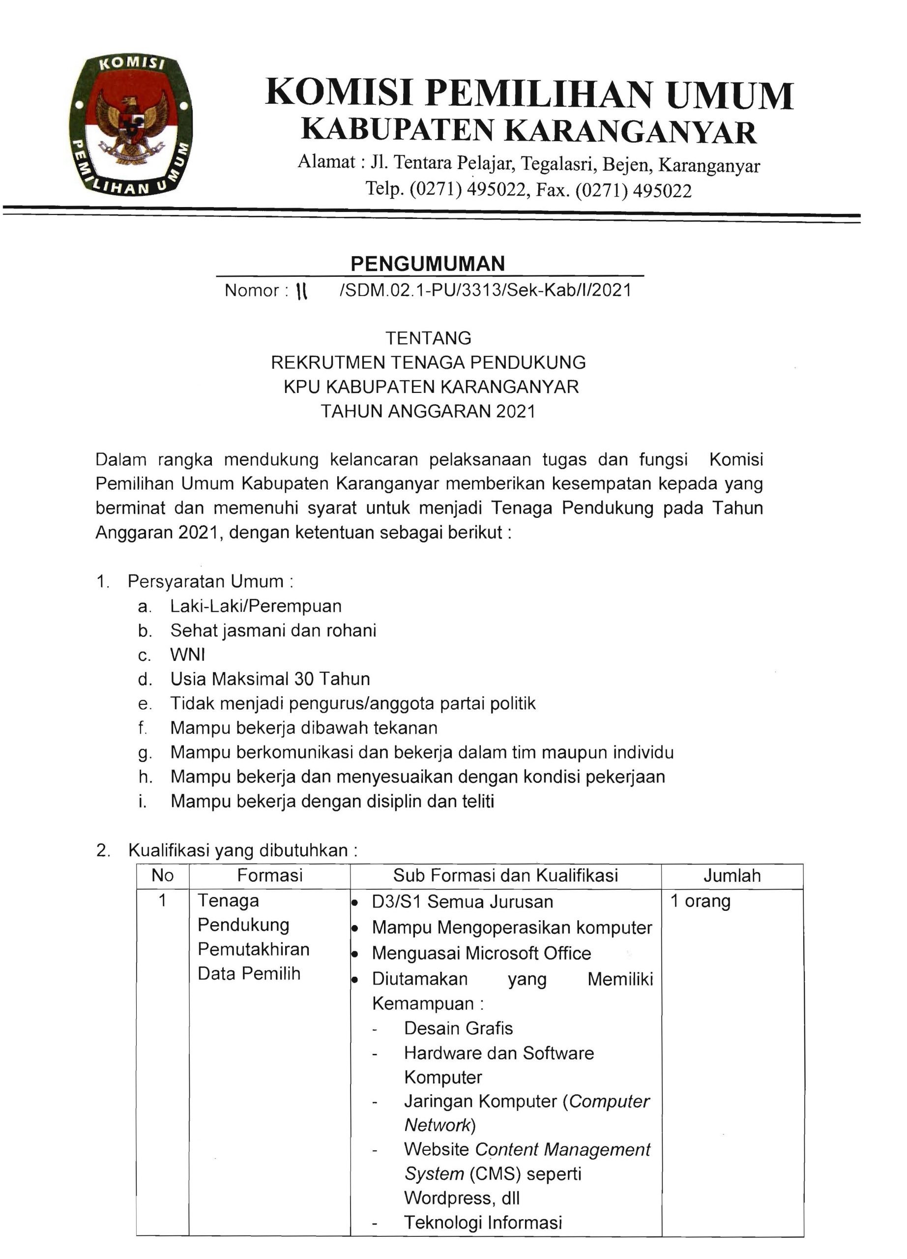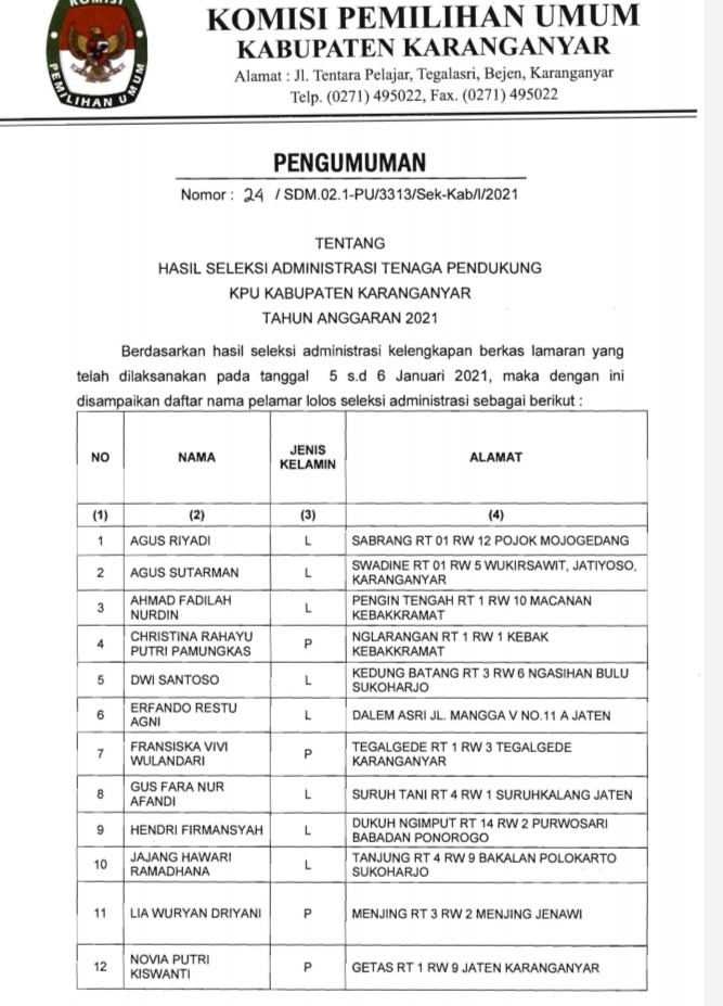 PEMENANG LOMBA DALAM PENYELENGGARAN MILKOI 2020 DITETAPKAN DENGAN KEPUTUSAN KOMISI PEMILIHAN UMUM KABUPATEN KARANGANYAR NOMOR : 34/HK.03.1-Kpt/3313/KPU-Kab/X/2020 TENTANG PENETAPAN PEMENANG LOMBA DALAM PENYELENGGARAAN PEMILIHAN KETUA OSIS SERENTAK TAHUN 2020 (MILKOI 2020) BAGI SMA/SMK/MA SE KABUPATEN KARANGANYAR.