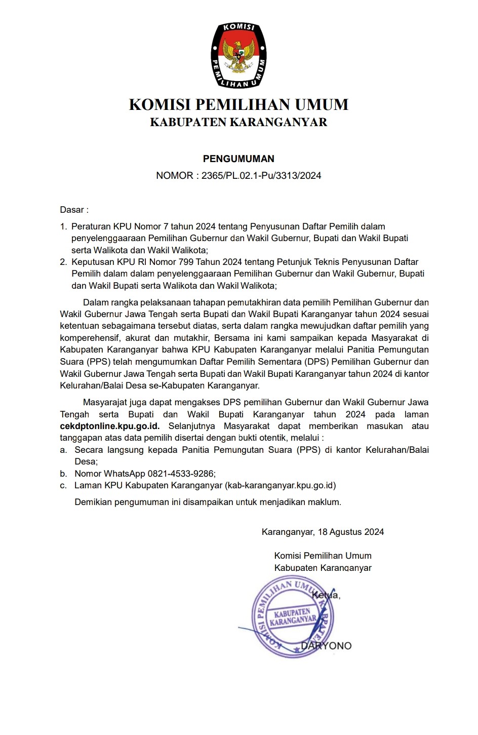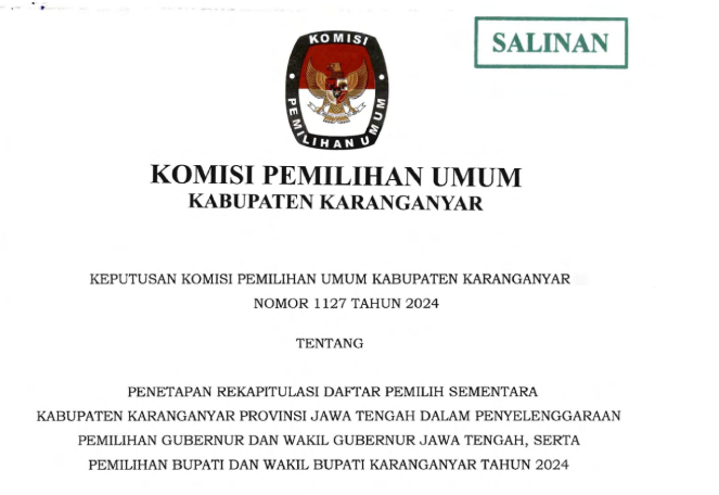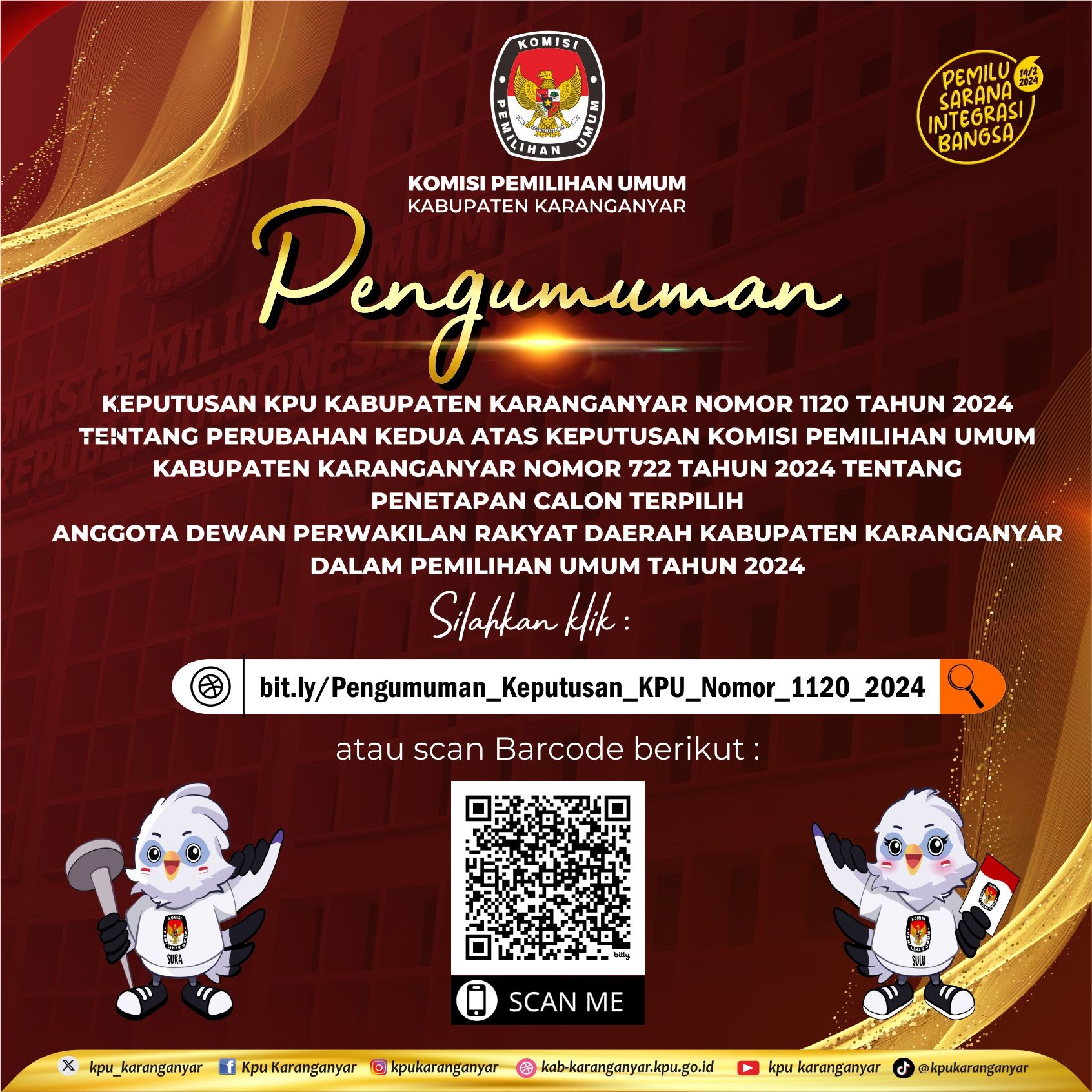 Keputusan Komisi Pemilihan Umum Kabupaten Karanganyar Nomor 1120 Tahun 2024 Tentang Perubahan Kedua Atas Keputusan Komisi Pemilihan Umum Kabupaten Karanganyar Nomor 722 Tahun 2024 Tentang Penetapan Calon Terpilih Anggota Dewan Perwakilan Rakyat Daerah Kabupaten Karanganyar Dalam Pemilihan Umum Tahun 2024