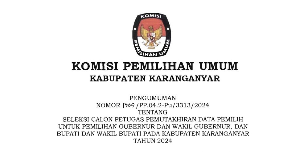 Berikut Pemberitahuan dalam rangka Pelaksanaan Kegiatan Market Sounding dalam rangka Pengadaan Logistik Pemilihan 2024 pada Rapat Koordinasi dan Bimbingan Teknis Persiapan Pengadaan Logistik Pemilihan Gubernur dan Wakil Gubernur, Bupati dan Wakil Bupati, serta Walikota dan Wakil Walikota Tahun 2024.