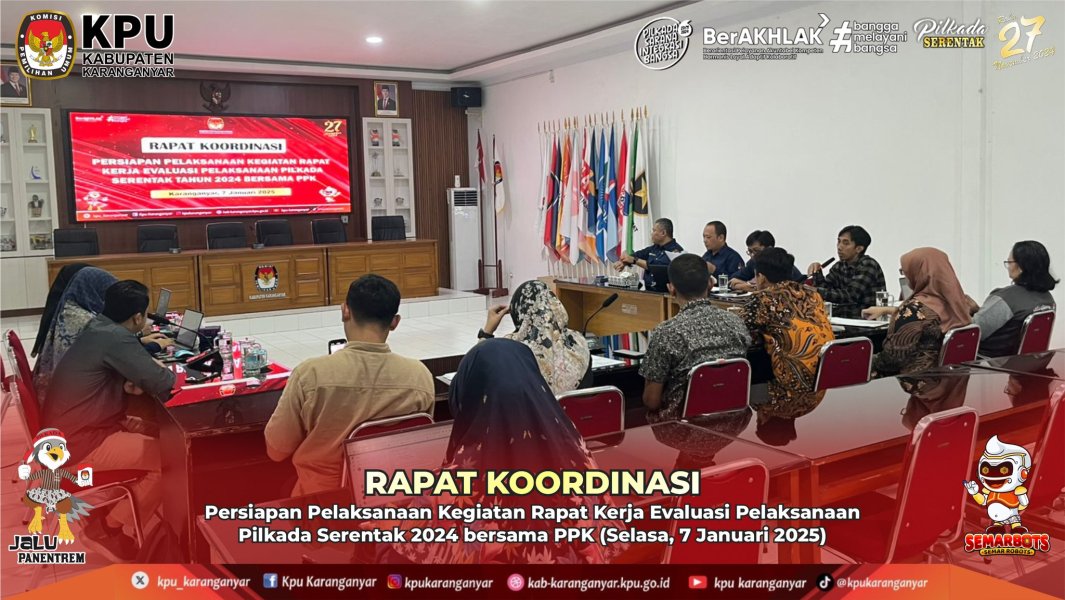 KPU Kabupaten Karanganyar Melaksanakan Rapat Koordinasi Persiapan Pelaksanaan Kegiatan Rapat Kerja Evaluasi Pelaksanaan Pilkada Serentak 2024 bersama PPK (Selasa, 7 Januari 2025)