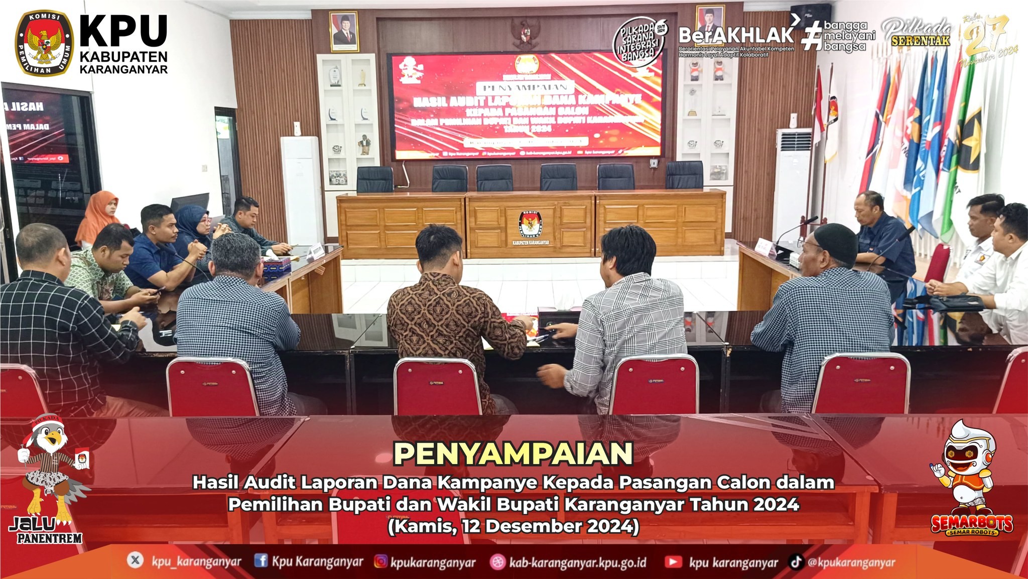 KPU Kabupaten Karanganyar Melaksanakan Penyampaian Hasil Audit Laporan Dana Kampanye Kepada Pasangan Calon dalam Pemilihan Bupati dan Wakil Bupati Karanganyar Tahun 2024 (Kamis, 12 Desember 2024)