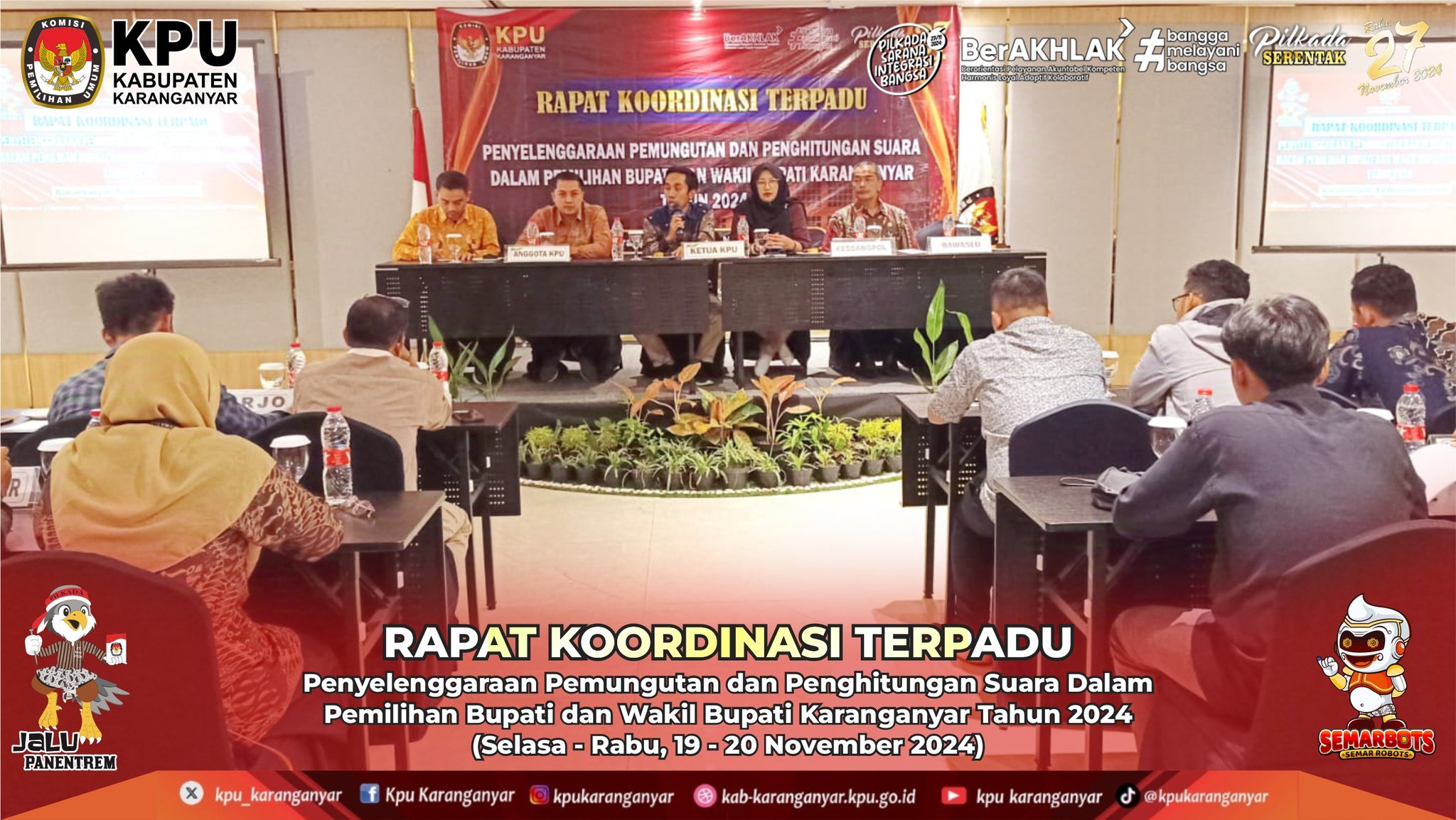 KPU Kabupaten Karanganyar Melaksanakan Rapat Koordinasi Terpadu Penyelenggaraan Pemungutan dan Penghitungan Suara dalam Pemilihan Bupati dan Wakil Bupati Karanganyar Tahun 2024 (Selasa - Rabu, 19 - 20 November 2024)