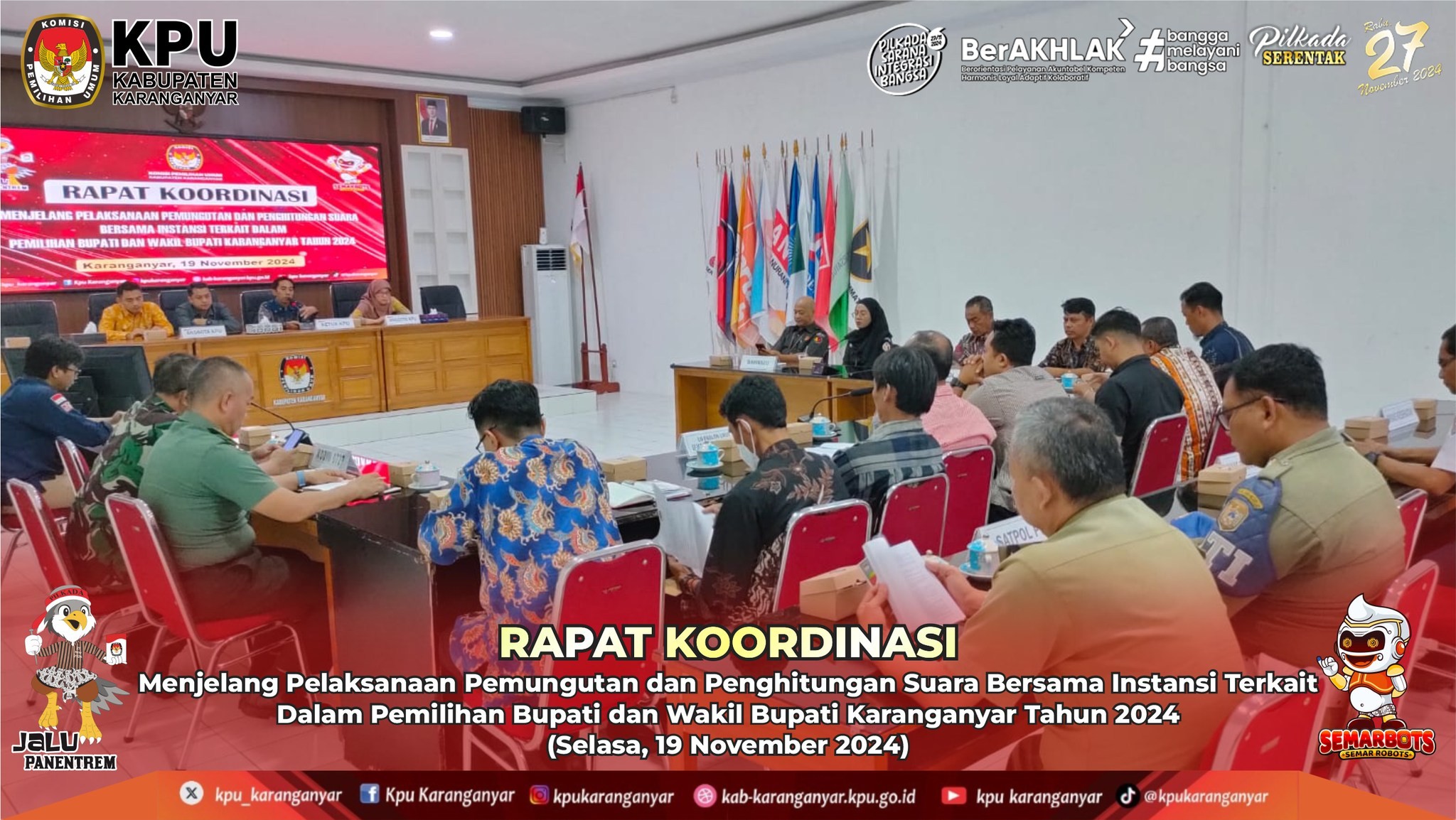 KPU Kabupaten Karanganyar Melaksanakan Rapat Koordinasi Menjelang Pelaksanaan Pemungutan dan Penghitungan Suara Bersama Instansi Terkait dalam Pemilihan Bupati dan Wakil Bupati Karanganyar Tahun 2024 (Selasa, 19 November 2024)