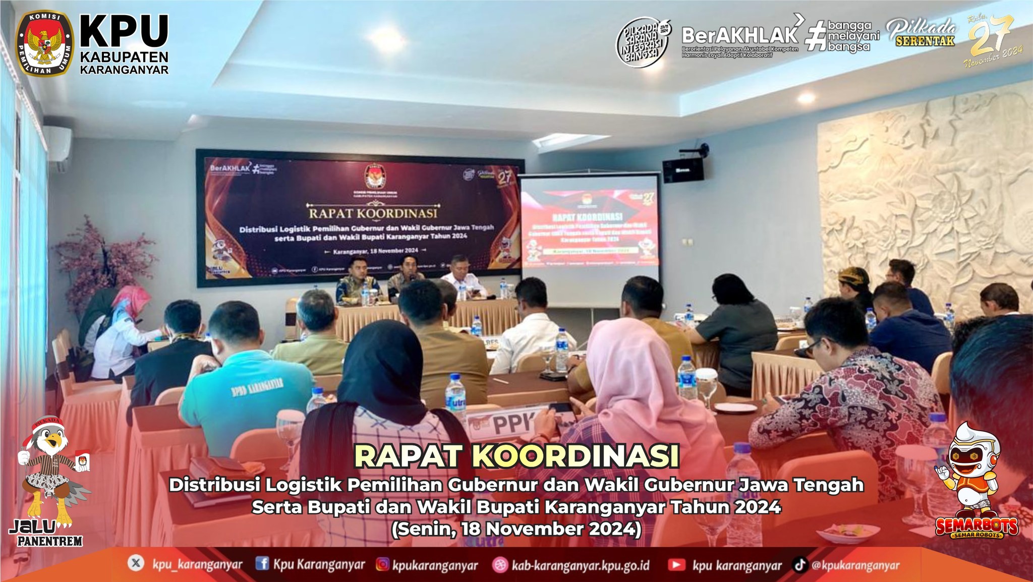 KPU Kabupaten Karanganyar Menggelar Rapat Koordinasi Distribusi Logistik Pemilihan Gubernur dan Wakil Gubernur Jawa Tengah serta Bupati dan Wakil Bupati Karanganyar Tahun 2024 (Senin, 18 November 2024)