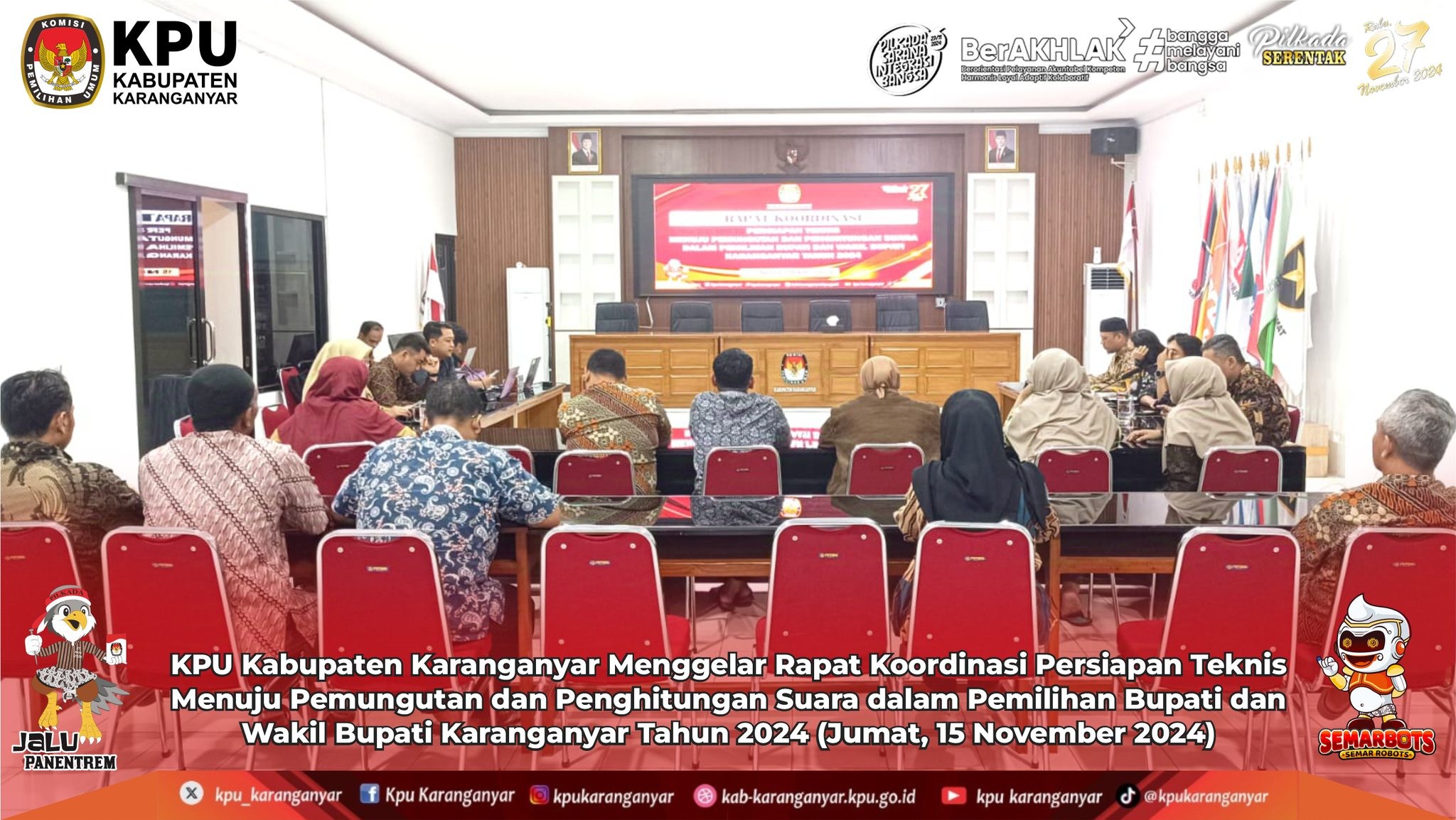 KPU Kabupaten Karanganyar Menggelar Rapat Koordinasi Persiapan Teknis Menuju Pemungutan dan Penghitungan Suara dalam Pemilihan Bupati dan Wakil Bupati Karanganyar Tahun 2024 (Jumat, 15 November 2024)