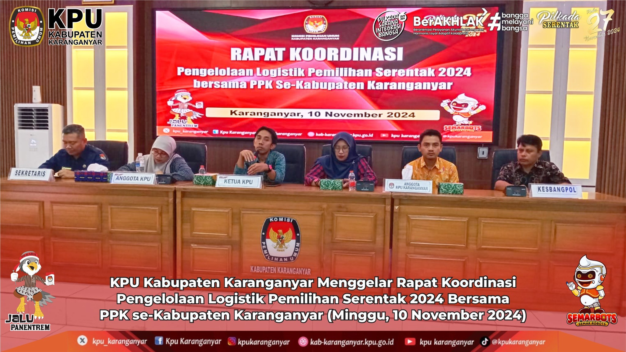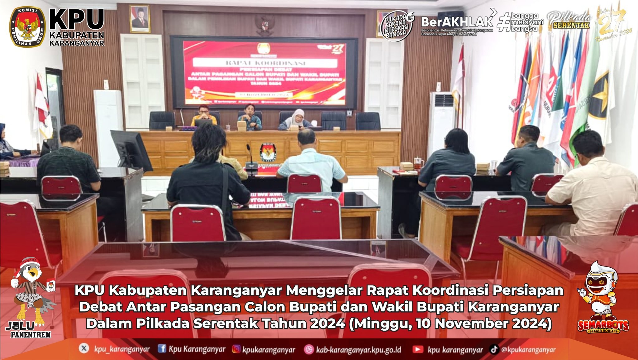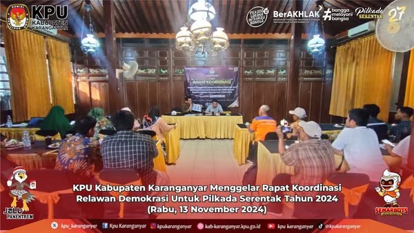 KPU Kabupaten Karanganyar Menggelar Rapat Koordinasi Persiapan Debat Antar Pasangan Calon Bupati dan Wakil Bupati Dalam Pilkada Serentak Tahun 2024 (Minggu, 10 November 2024)