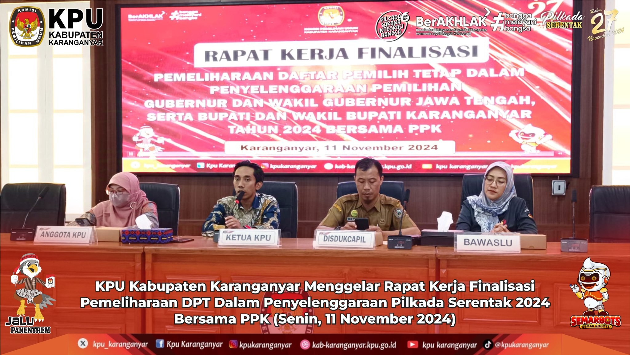 KPU Kabupaten Karanganyar Menggelar Rapat Kerja Finalisasi Pemeliharaan DPT Dalam Penyelenggaraan Pilkada Serentak 2024 Bersama PPK (Senin, 11 November 2024)