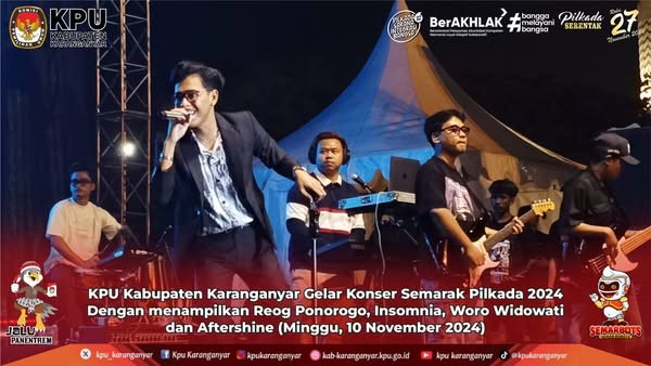 KPU Kabupaten Karanganyar Gelar Konser Semarak Pilkada 2024 Dengan menampilkan Reog Ponorogo, Insomnia, Woro Widowati dan Aftershine (Minggu, 10 November 2024)