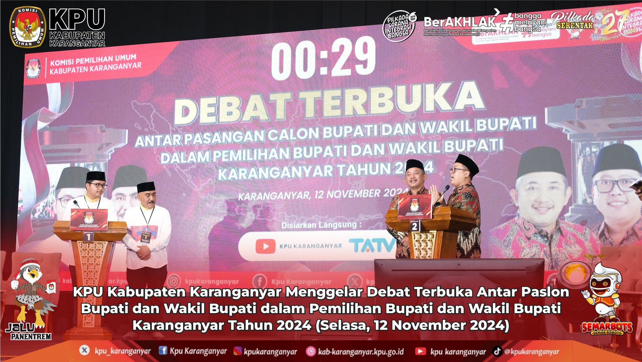 KPU Kabupaten Karanganyar Menggelar Debat Terbuka Antar Paslon Bupati dan Wakil Bupati dalam Pemilihan Bupati dan Wakil Bupati Karanganyar Tahun 2024 (Selasa, 12 November 2024)