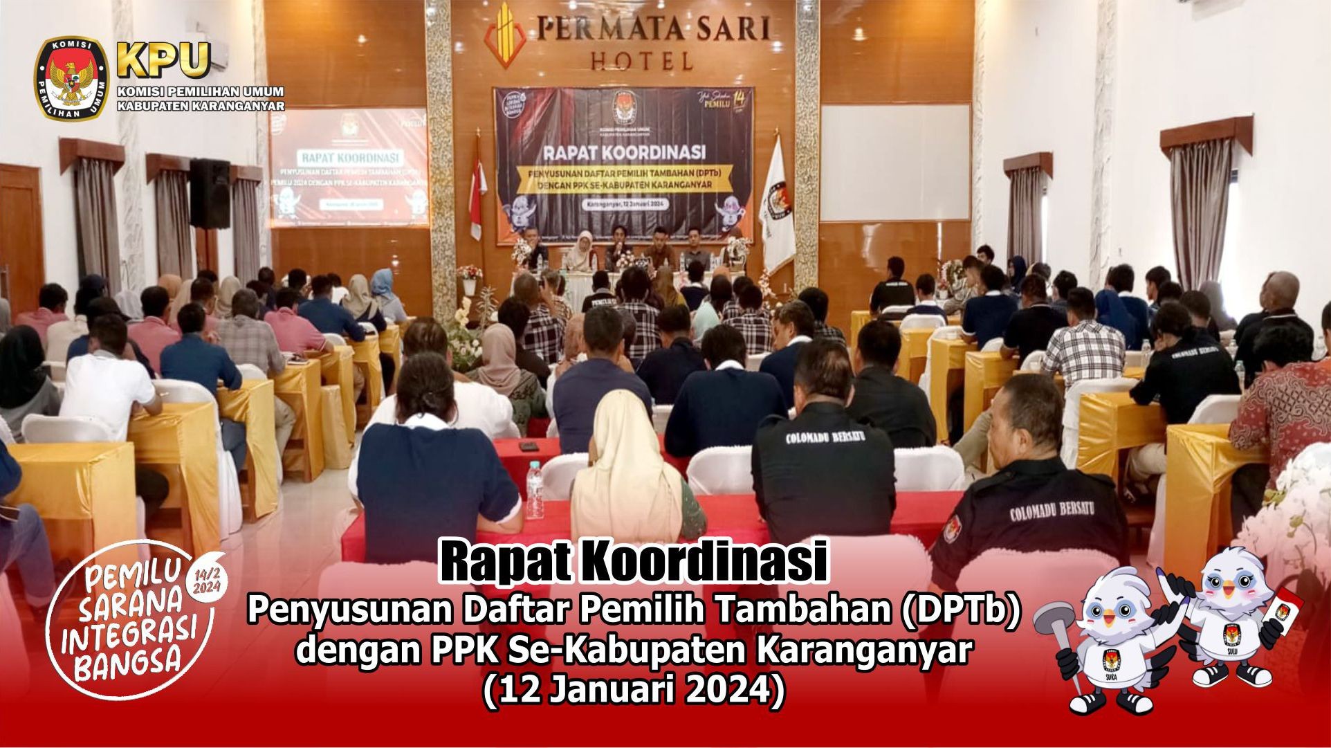 KPU Kabupaten Karanganyar melaksanakan Bimbingan Teknis untuk 22.400 orang Kelompok Penyelenggara Pemungutan Suara (KPPS) Pemilu 2024 se-Kabupaten Karanganyar dalam rentang waktu 26 s/d 29 Januari 2024.