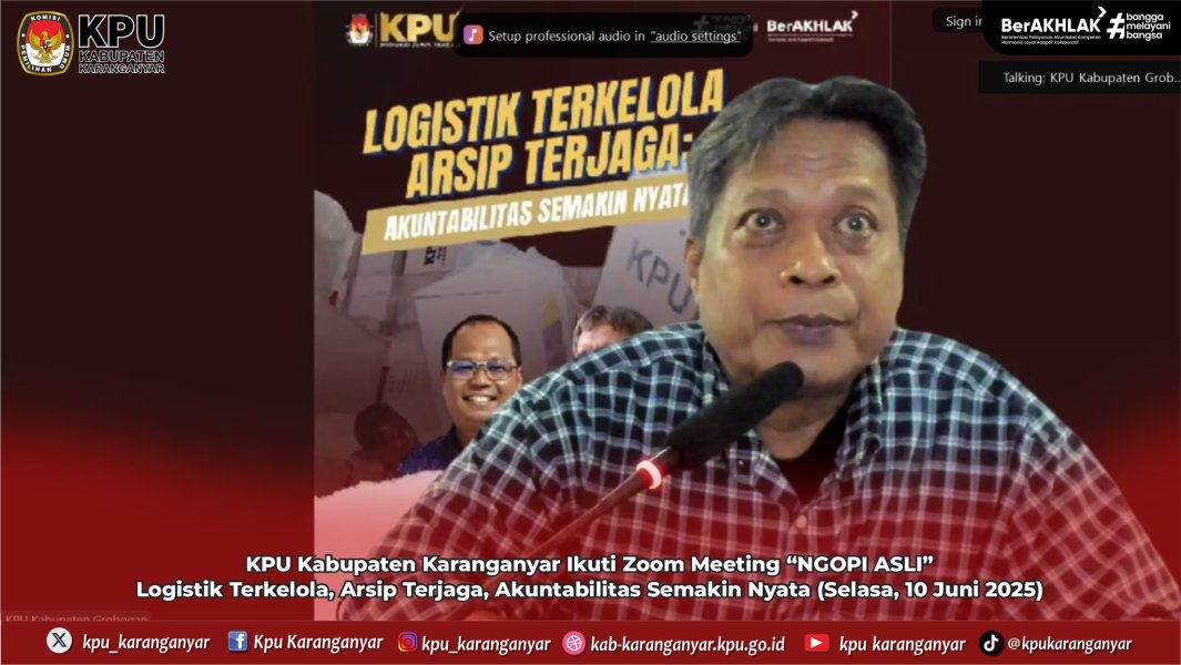 KPU Kabupaten Karanganyar Ikuti Zoom Meeting Rakor Implementasi Manajemen Resiko dan Penyusunan Risk Register atau Daftar Resiko Tahun 2025 pada KPU, KPU Provinsi dan KPU Kabupaten/Kota (Kamis, 12 Juni 2025)