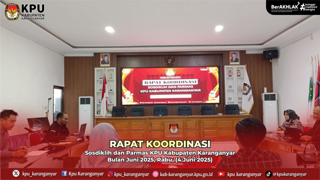 KPU Kabupaten Karanganyar Menggelar Kegiatan Rapat Koordinasi Sosialisasi Pendidikan Pemilih dan Partisipasi Masyarakat Bulan Juni Tahun 2025, Rabu, (4 Juni 2025)